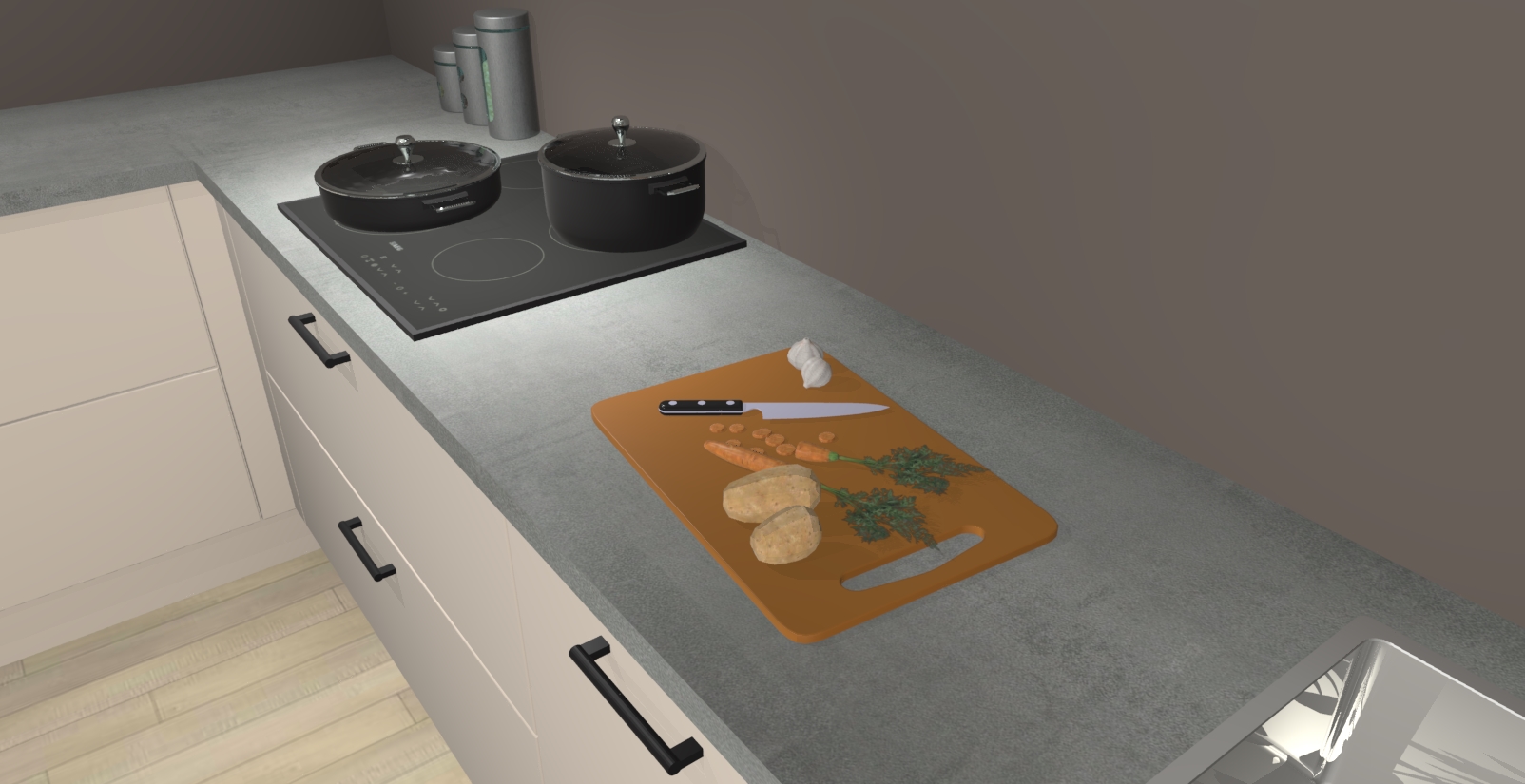 Inclusief plinten, stelpoten en werkblad