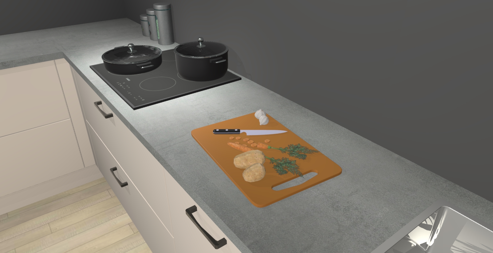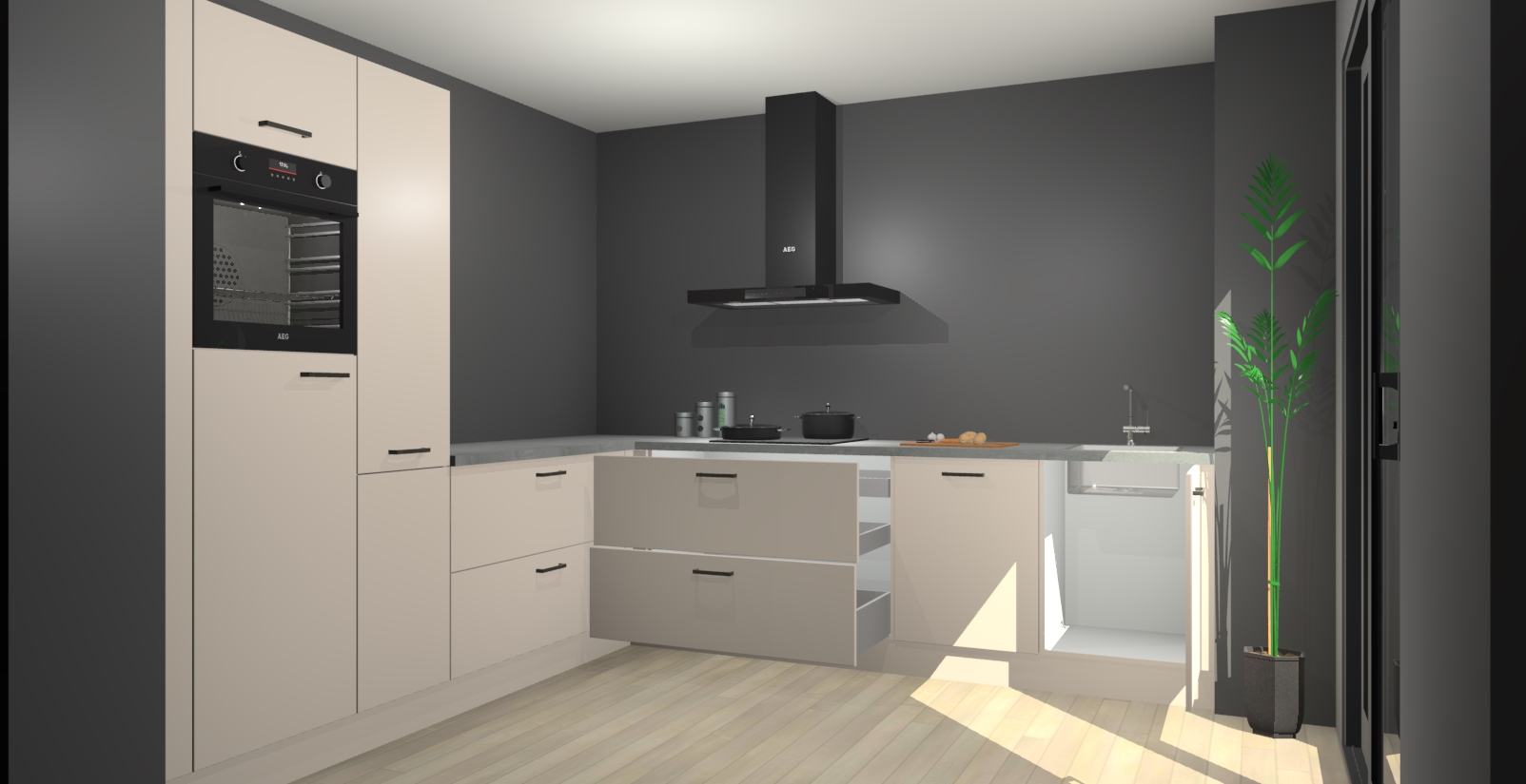 Inclusief plinten, stelpoten en werkblad