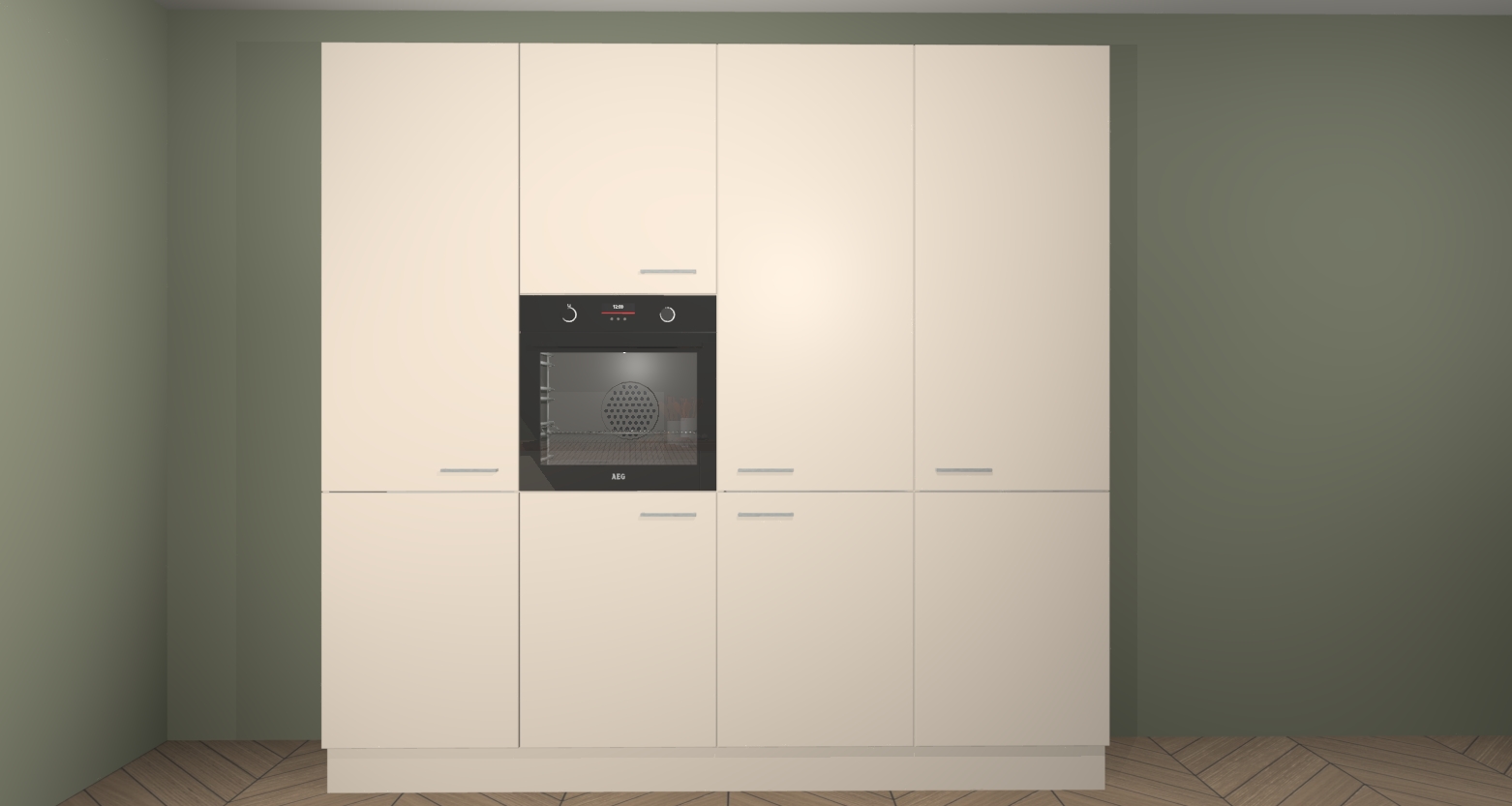 Met een modern, tijdloos design en ruime opslagruimte, zult u zich in no-time thuis voelen in uw nieuwe keuken. Uw leven wordt eenvoudiger met de soft-close deuren die voor het ultieme stille comfort zorgen - geen geluid dat u stoort terwijl u kookt. Ook is de keuken voorzien van 5 ingebouwde apparaten: een oven, inductie kookplaat, afzuigkap, vaatwasser en koelkast. Deze kunnen gemakkelijk na bestelling worden bijgewerkt naar AEG - waardoor uw luxe ervaring compleet is.