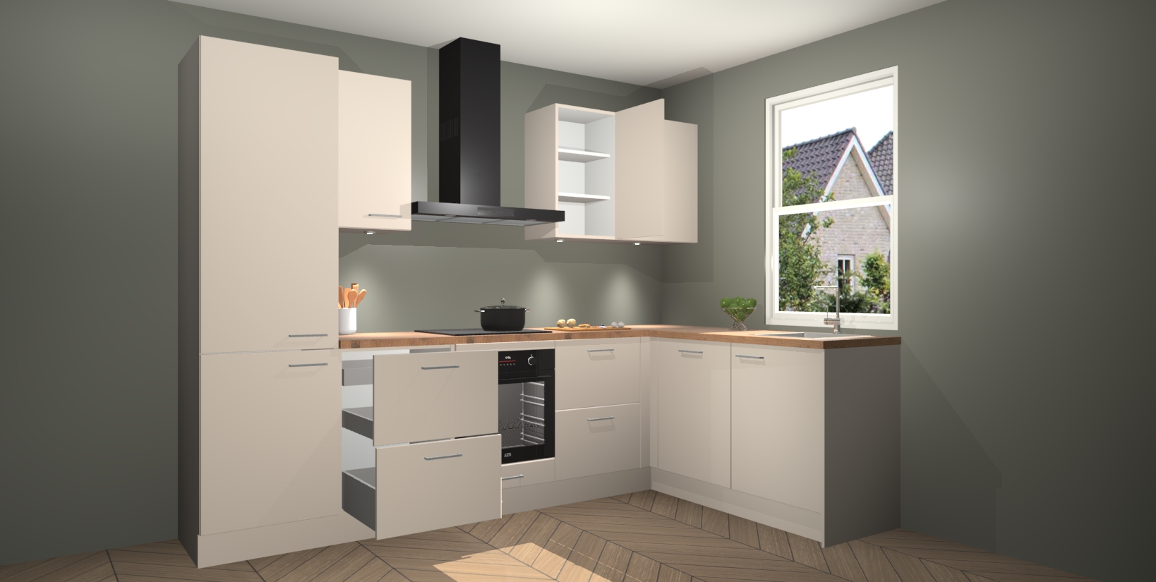 In deze box zijn alle kleuren verzameld van de deuren en werkbladen. Vraag de gratis kleurenbox aan en kijk thuis rustig verder!