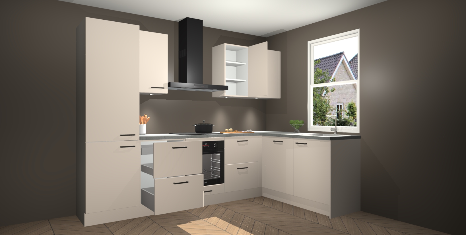 Maak kennis met de trendsettende en luxe Kasjmier keuken Bazel! Deze uitzonderlijke keuken van Duitse kwaliteit is stijlvol, modern en perfect om elk huis mee op te fleuren. De binnenkant van de kasten worden meegenomen in een bijpassende kleur om een samenhangende eigentijdse esthetiek te voltooien. U zult dol zijn op hoe uw pas gerenoveerde keuken eruitziet met de Kasjmier editie!