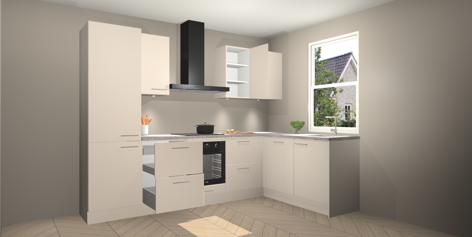 Maak kennis met de trendsettende en luxe Kasjmier keuken Bazel! Deze uitzonderlijke keuken van Duitse kwaliteit is stijlvol, modern en perfect om elk huis mee op te fleuren. De binnenkant van de kasten worden meegenomen in een bijpassende kleur om een samenhangende eigentijdse esthetiek te voltooien. U zult dol zijn op hoe uw pas gerenoveerde keuken eruitziet met de Kasjmier editie!