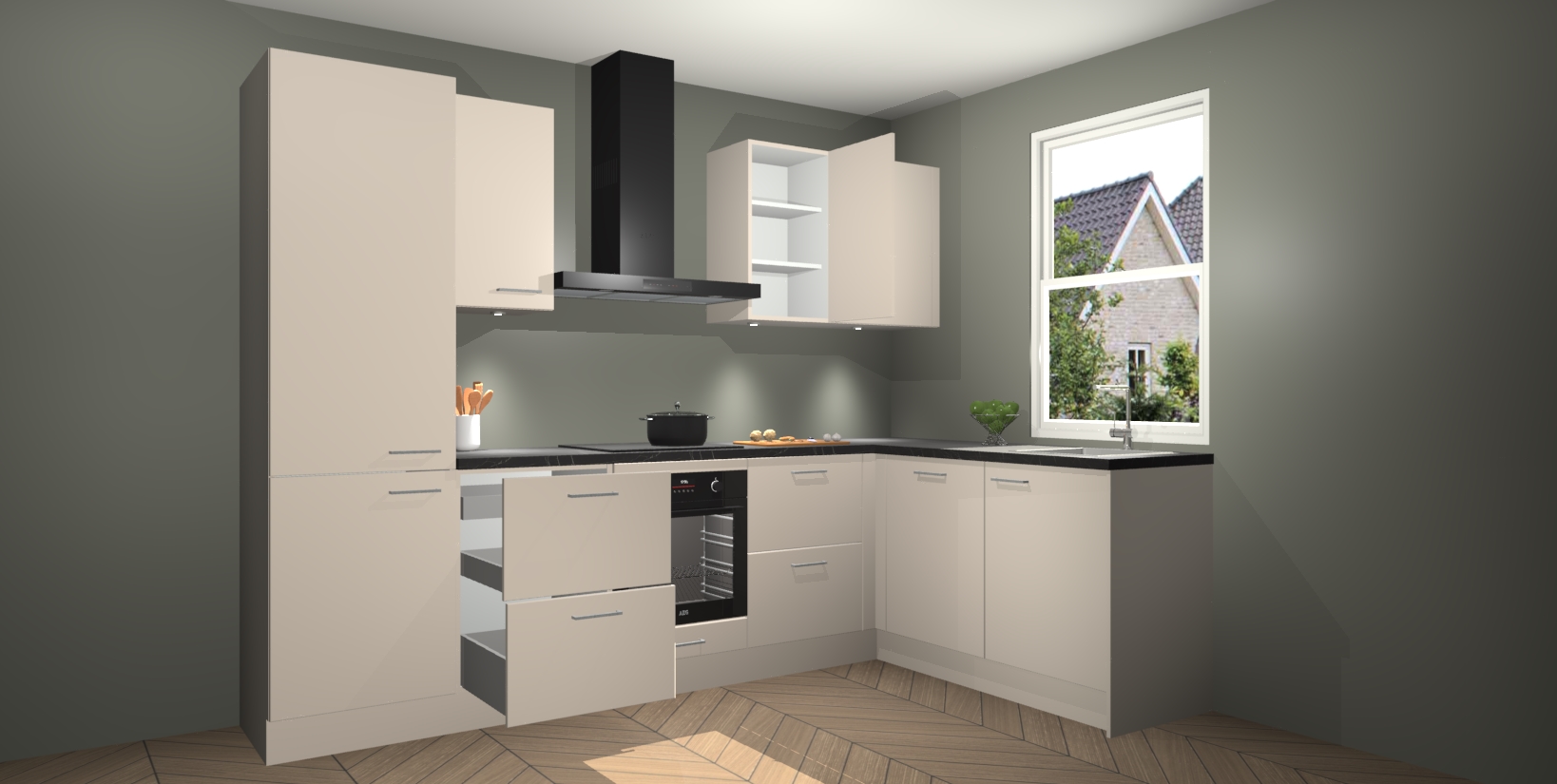 Maak kennis met de trendsettende en luxe Kasjmier keuken Bazel! Deze uitzonderlijke keuken van Duitse kwaliteit is stijlvol, modern en perfect om elk huis mee op te fleuren. De binnenkant van de kasten worden meegenomen in een bijpassende kleur om een samenhangende eigentijdse esthetiek te voltooien. U zult dol zijn op hoe uw pas gerenoveerde keuken eruitziet met de Kasjmier editie!
