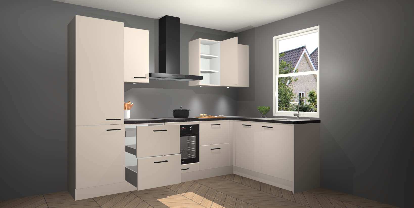 Maak kennis met de trendsettende en luxe Kasjmier keuken Bazel! Deze uitzonderlijke keuken van Duitse kwaliteit is stijlvol, modern en perfect om elk huis mee op te fleuren. De binnenkant van de kasten worden meegenomen in een bijpassende kleur om een samenhangende eigentijdse esthetiek te voltooien. U zult dol zijn op hoe uw pas gerenoveerde keuken eruitziet met de Kasjmier editie!