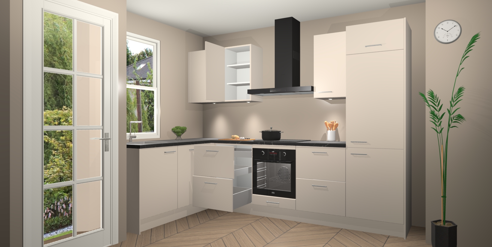 Inclusief plinten, stelpoten en werkblad