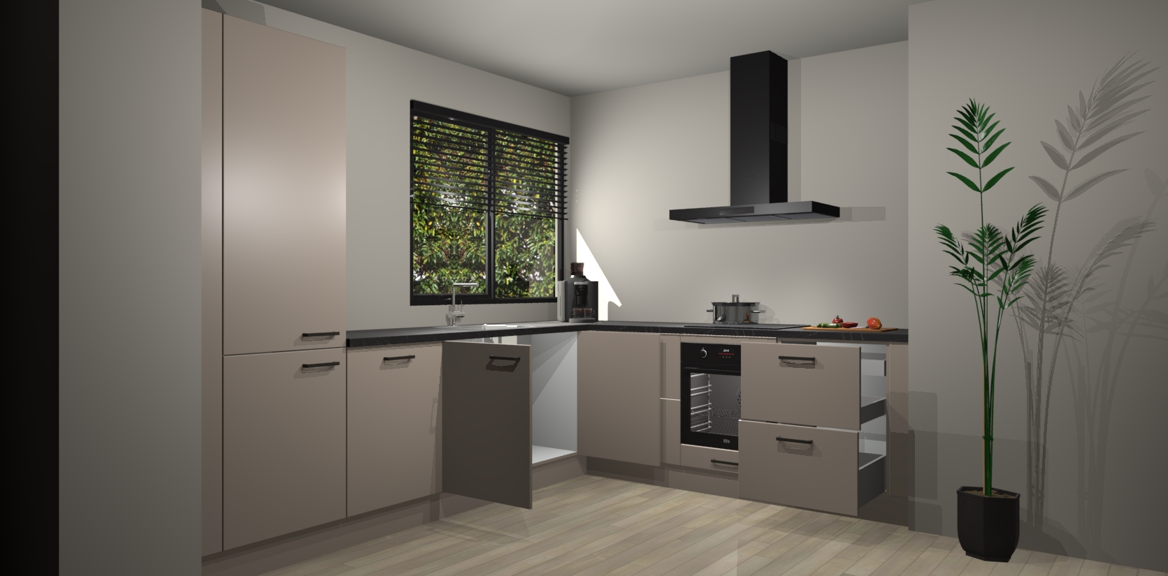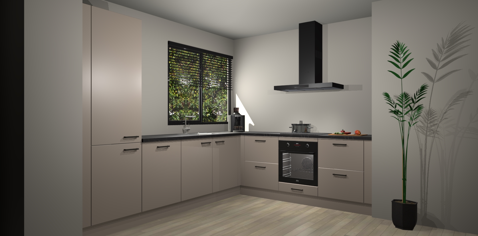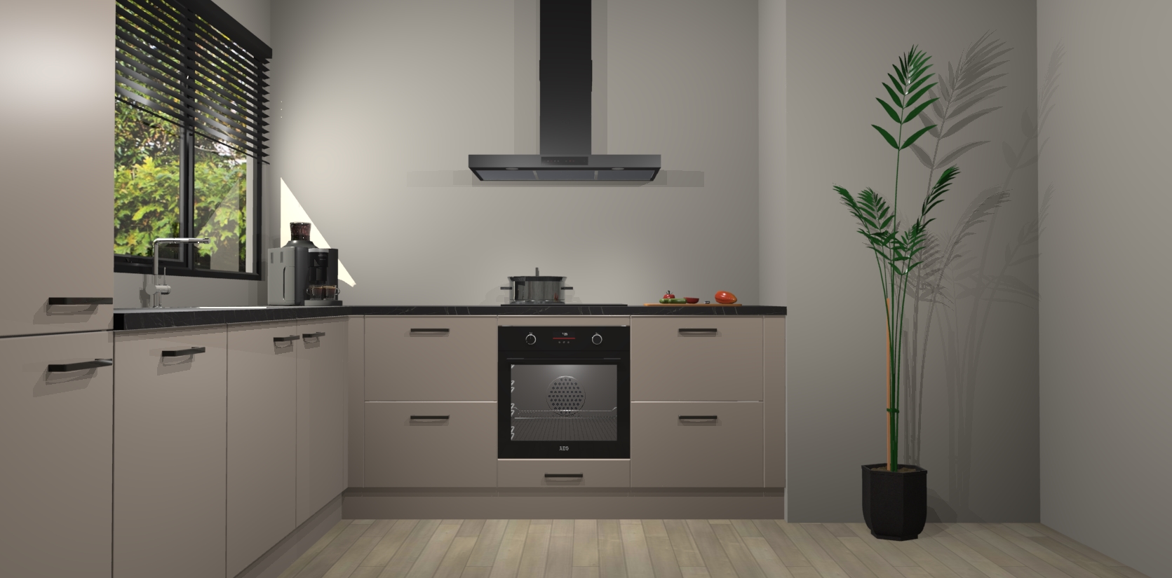 Met een modern, tijdloos design en ruime opslagruimte, zult u zich in no-time thuis voelen in uw nieuwe keuken. Uw leven wordt eenvoudiger met de soft-close deuren die voor het ultieme stille comfort zorgen - geen geluid dat u stoort terwijl u kookt. Ook is de keuken voorzien van 5 ingebouwde apparaten: een oven, inductie kookplaat, afzuigkap, vaatwasser en koelkast. Deze kunnen gemakkelijk na bestelling worden bijgewerkt naar AEG - waardoor uw luxe ervaring compleet is.