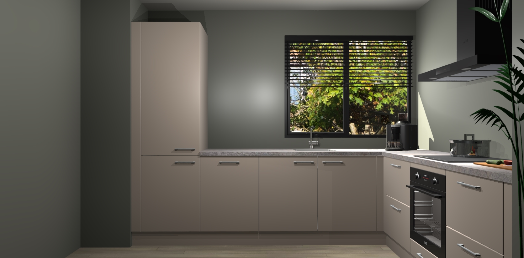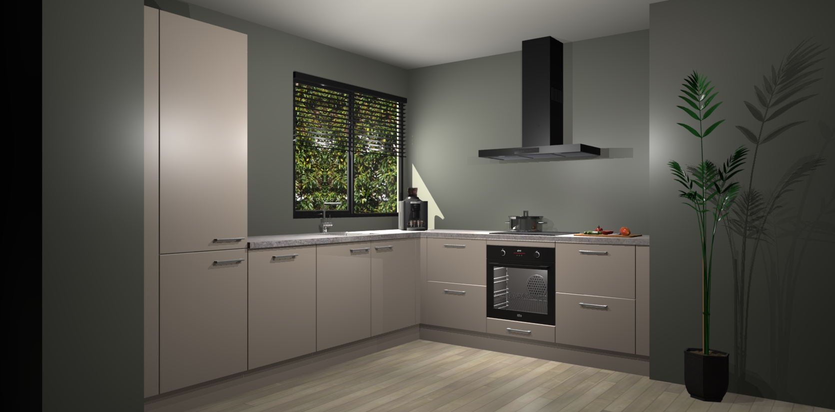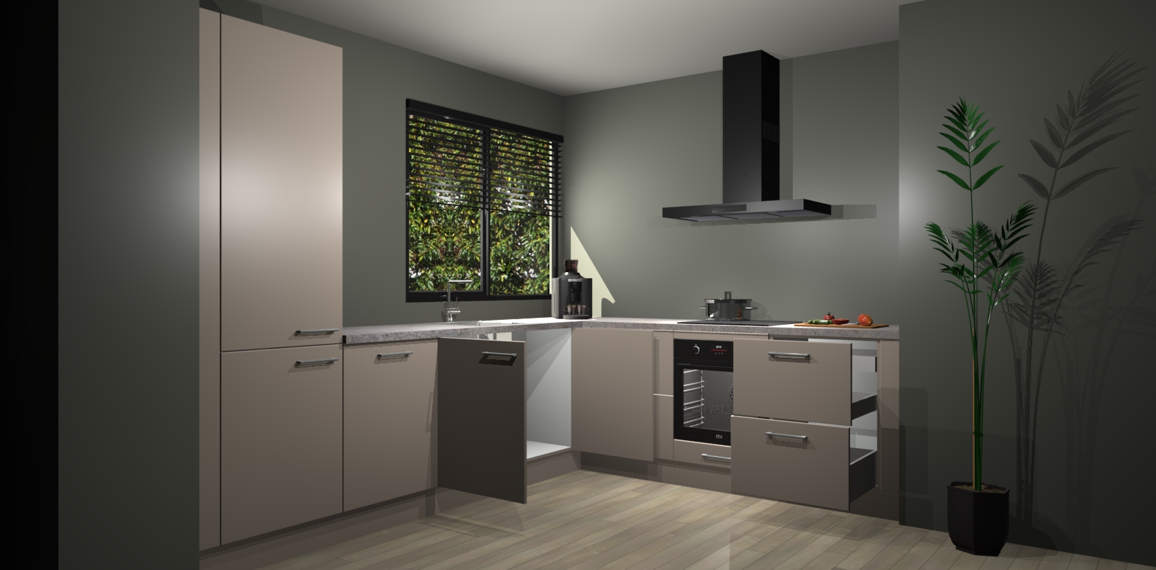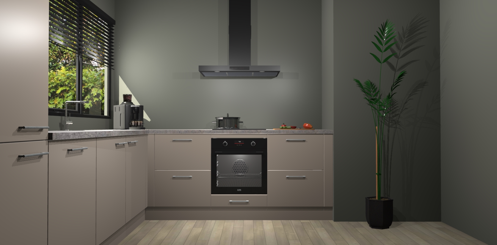 Met een modern, tijdloos design en ruime opslagruimte, zult u zich in no-time thuis voelen in uw nieuwe keuken. Uw leven wordt eenvoudiger met de soft-close deuren die voor het ultieme stille comfort zorgen - geen geluid dat u stoort terwijl u kookt. Ook is de keuken voorzien van 5 ingebouwde apparaten: een oven, inductie kookplaat, afzuigkap, vaatwasser en koelkast. Deze kunnen gemakkelijk na bestelling worden bijgewerkt naar AEG - waardoor uw luxe ervaring compleet is.