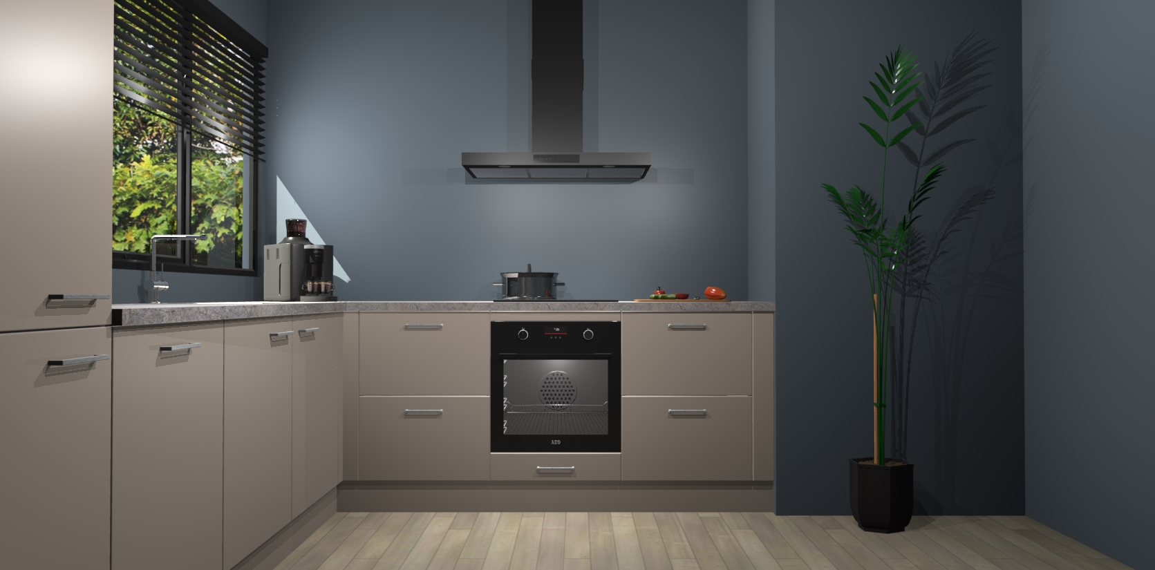 Met een modern, tijdloos design en ruime opslagruimte, zult u zich in no-time thuis voelen in uw nieuwe keuken. Uw leven wordt eenvoudiger met de soft-close deuren die voor het ultieme stille comfort zorgen - geen geluid dat u stoort terwijl u kookt. Ook is de keuken voorzien van 5 ingebouwde apparaten: een oven, inductie kookplaat, afzuigkap, vaatwasser en koelkast. Deze kunnen gemakkelijk na bestelling worden bijgewerkt naar AEG - waardoor uw luxe ervaring compleet is.
