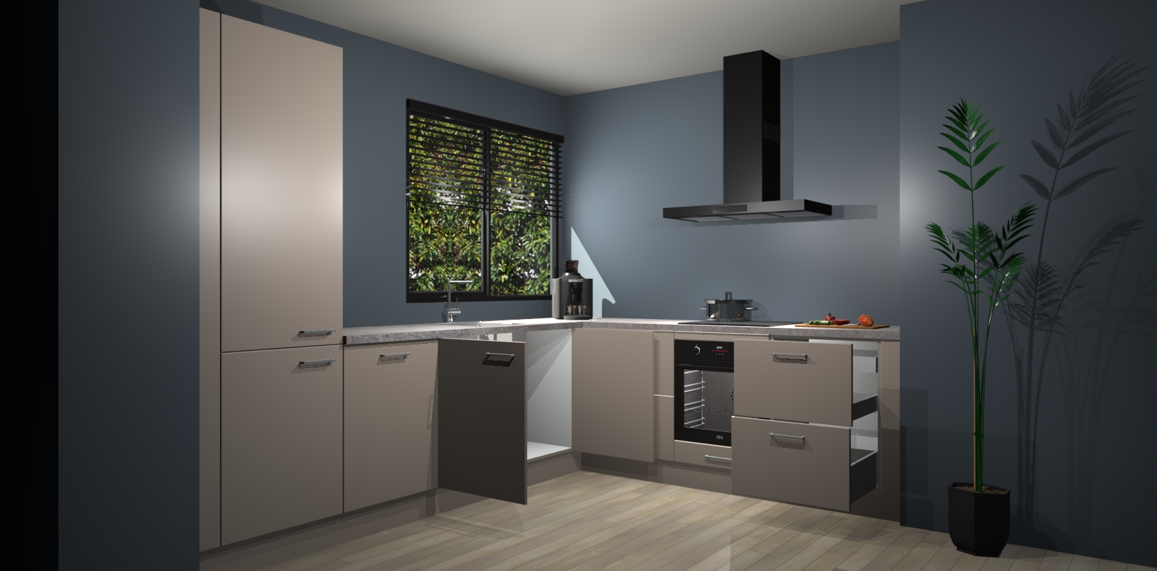 Inclusief plinten, stelpoten en werkblad