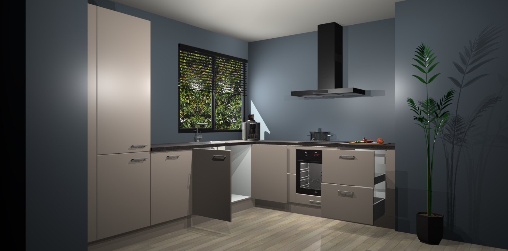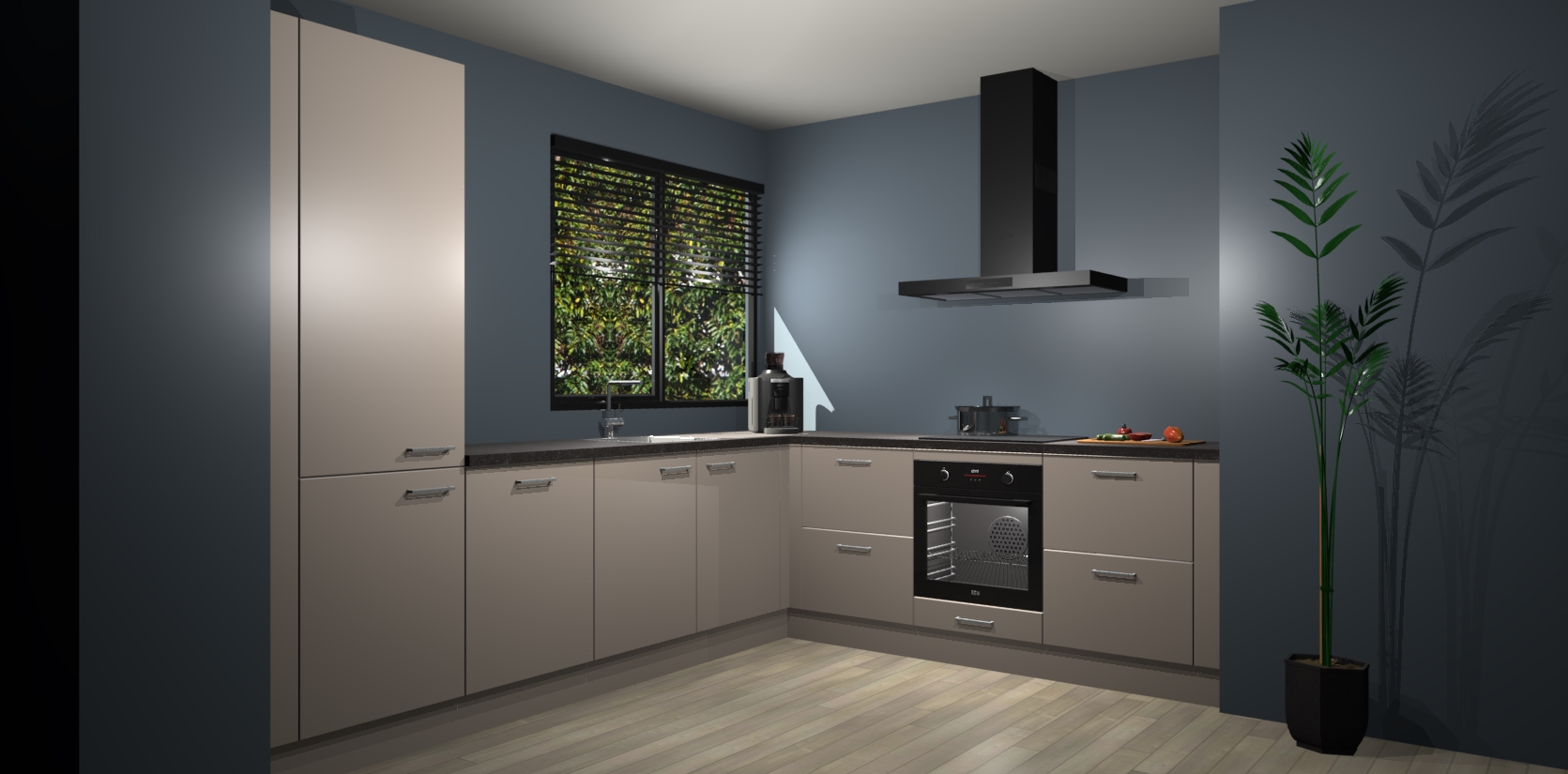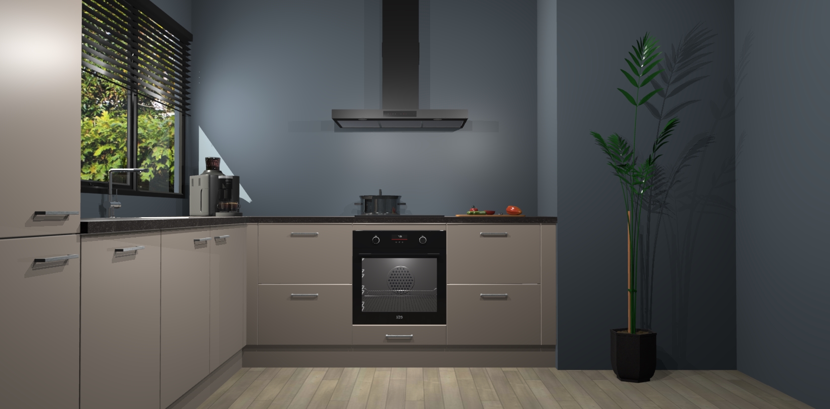 Met een modern, tijdloos design en ruime opslagruimte, zult u zich in no-time thuis voelen in uw nieuwe keuken. Uw leven wordt eenvoudiger met de soft-close deuren die voor het ultieme stille comfort zorgen - geen geluid dat u stoort terwijl u kookt. Ook is de keuken voorzien van 5 ingebouwde apparaten: een oven, inductie kookplaat, afzuigkap, vaatwasser en koelkast. Deze kunnen gemakkelijk na bestelling worden bijgewerkt naar AEG - waardoor uw luxe ervaring compleet is.