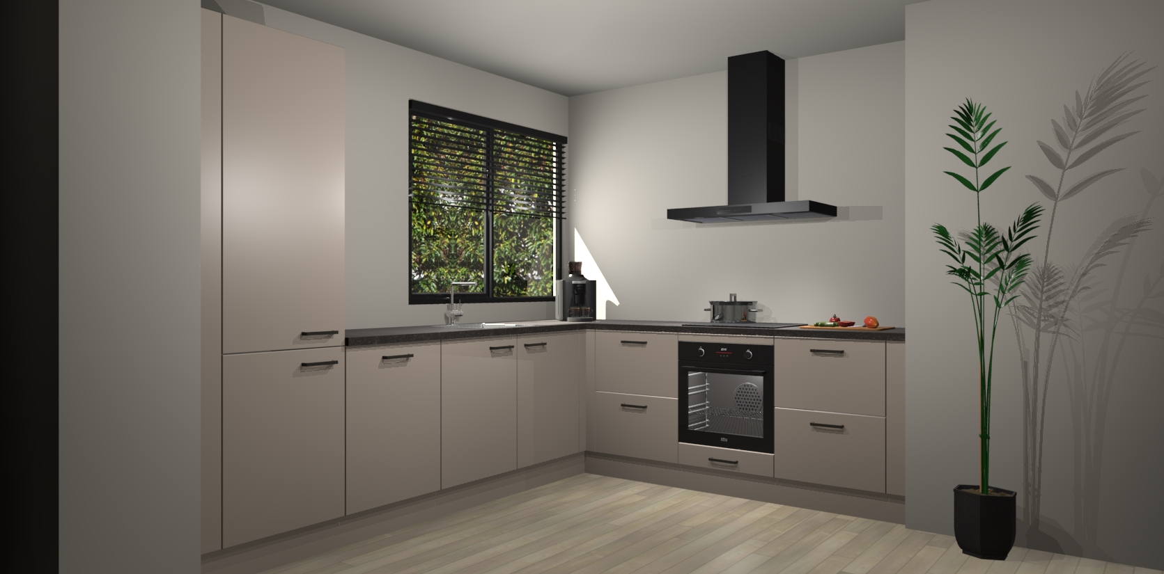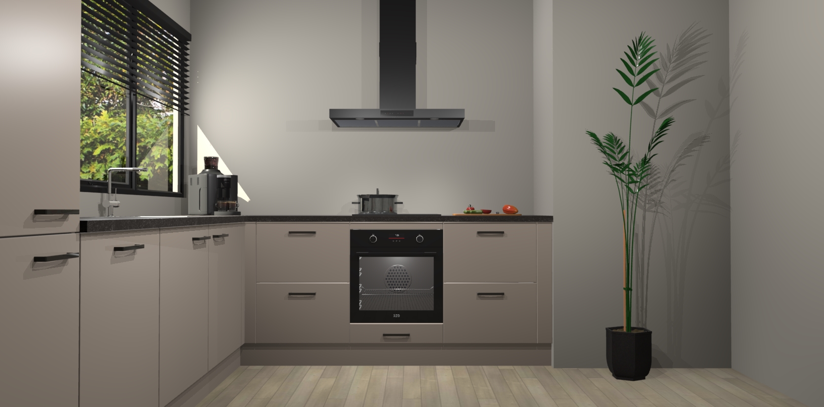 Met een modern, tijdloos design en ruime opslagruimte, zult u zich in no-time thuis voelen in uw nieuwe keuken. Uw leven wordt eenvoudiger met de soft-close deuren die voor het ultieme stille comfort zorgen - geen geluid dat u stoort terwijl u kookt. Ook is de keuken voorzien van 5 ingebouwde apparaten: een oven, inductie kookplaat, afzuigkap, vaatwasser en koelkast. Deze kunnen gemakkelijk na bestelling worden bijgewerkt naar AEG - waardoor uw luxe ervaring compleet is.