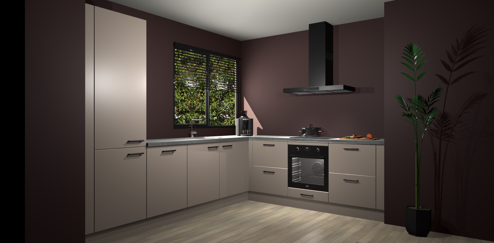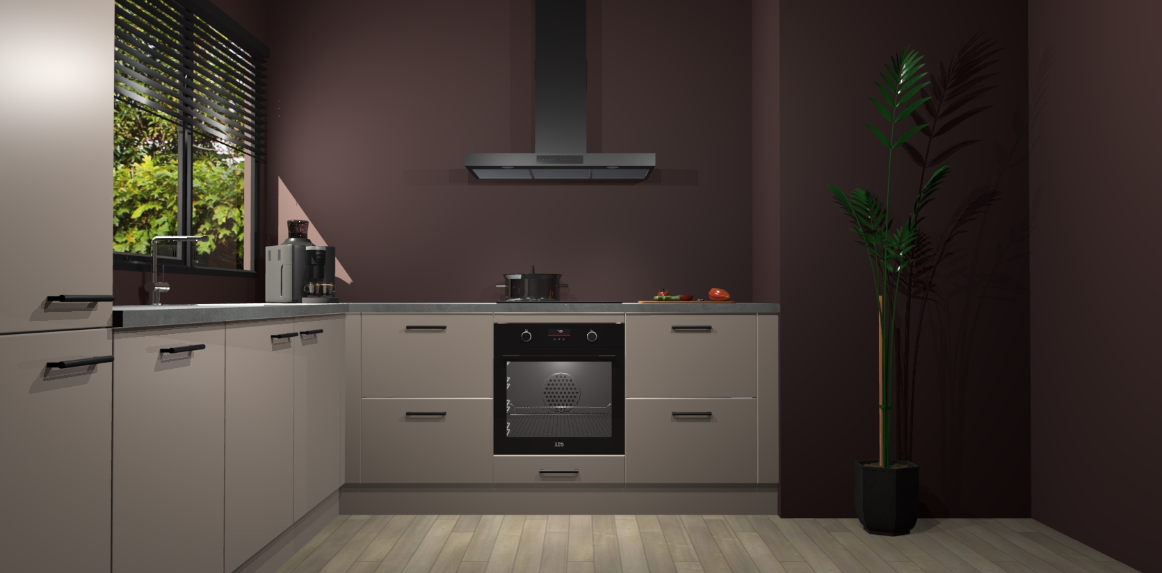 Met een modern, tijdloos design en ruime opslagruimte, zult u zich in no-time thuis voelen in uw nieuwe keuken. Uw leven wordt eenvoudiger met de soft-close deuren die voor het ultieme stille comfort zorgen - geen geluid dat u stoort terwijl u kookt. Ook is de keuken voorzien van 5 ingebouwde apparaten: een oven, inductie kookplaat, afzuigkap, vaatwasser en koelkast. Deze kunnen gemakkelijk na bestelling worden bijgewerkt naar AEG - waardoor uw luxe ervaring compleet is.