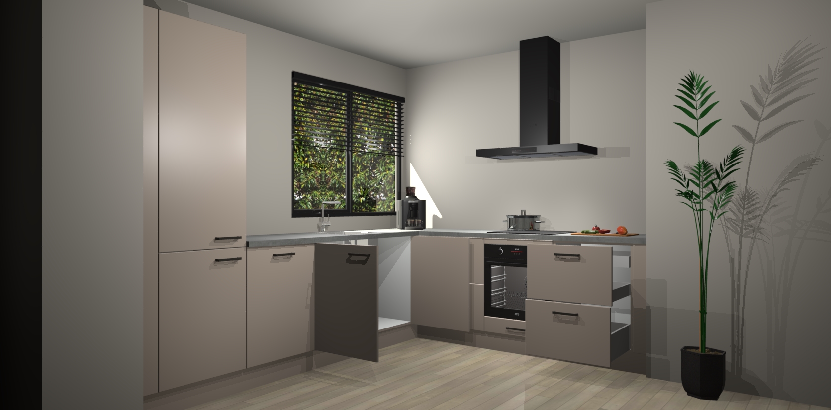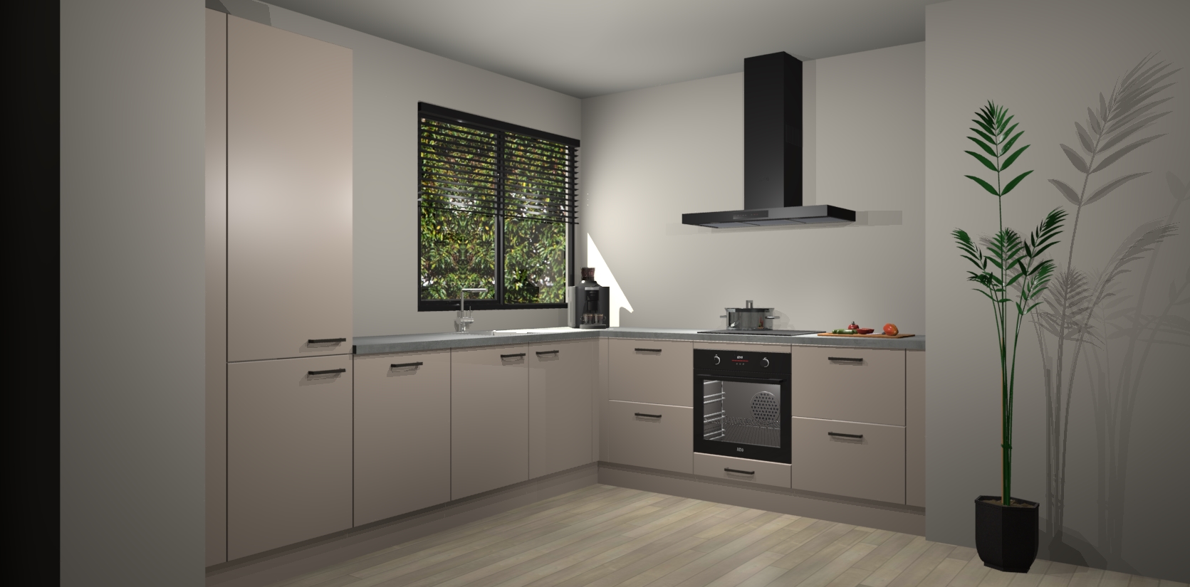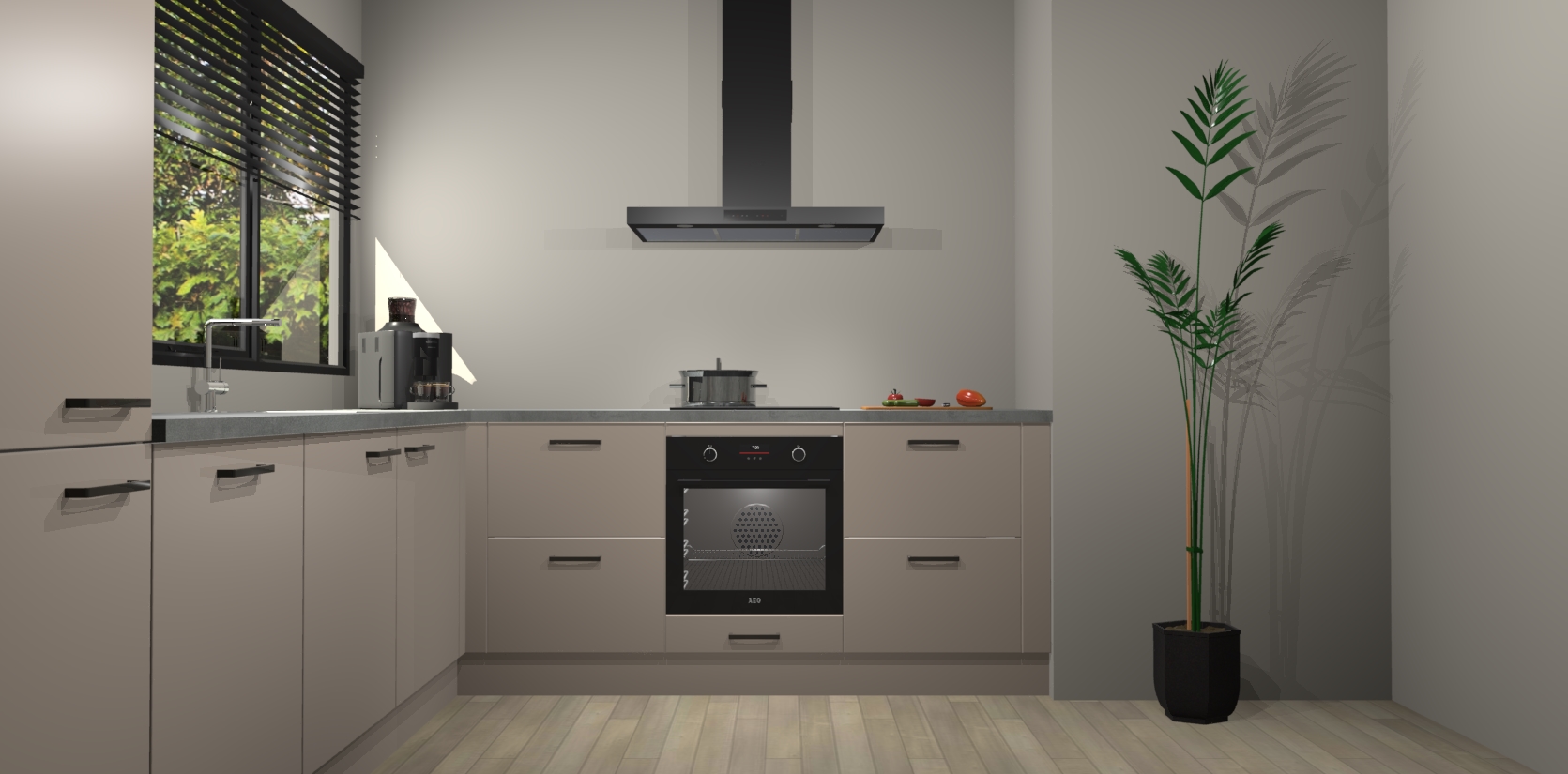 Met een modern, tijdloos design en ruime opslagruimte, zult u zich in no-time thuis voelen in uw nieuwe keuken. Uw leven wordt eenvoudiger met de soft-close deuren die voor het ultieme stille comfort zorgen - geen geluid dat u stoort terwijl u kookt. Ook is de keuken voorzien van 5 ingebouwde apparaten: een oven, inductie kookplaat, afzuigkap, vaatwasser en koelkast. Deze kunnen gemakkelijk na bestelling worden bijgewerkt naar AEG - waardoor uw luxe ervaring compleet is.