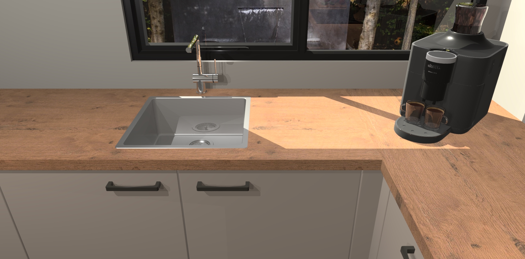 - De spoelbak is nog niet in gevreesd. Dit dient tijdens het werk gedaan te worden