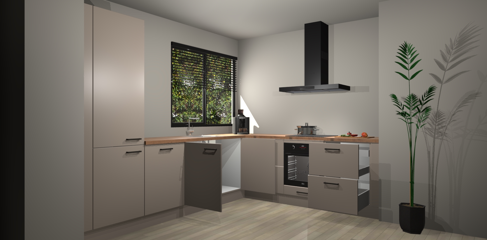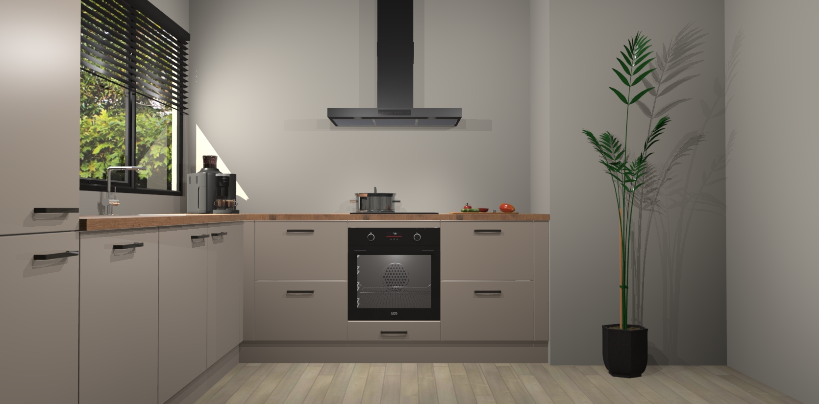 Inclusief plinten, stelpoten en werkblad