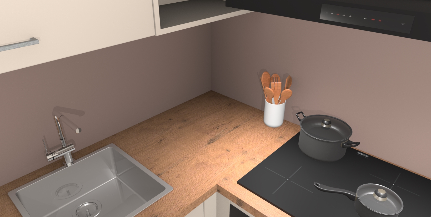 - Uitsparing van kookplaat, spoelbak en kraan dient u zelf te verzorgen.