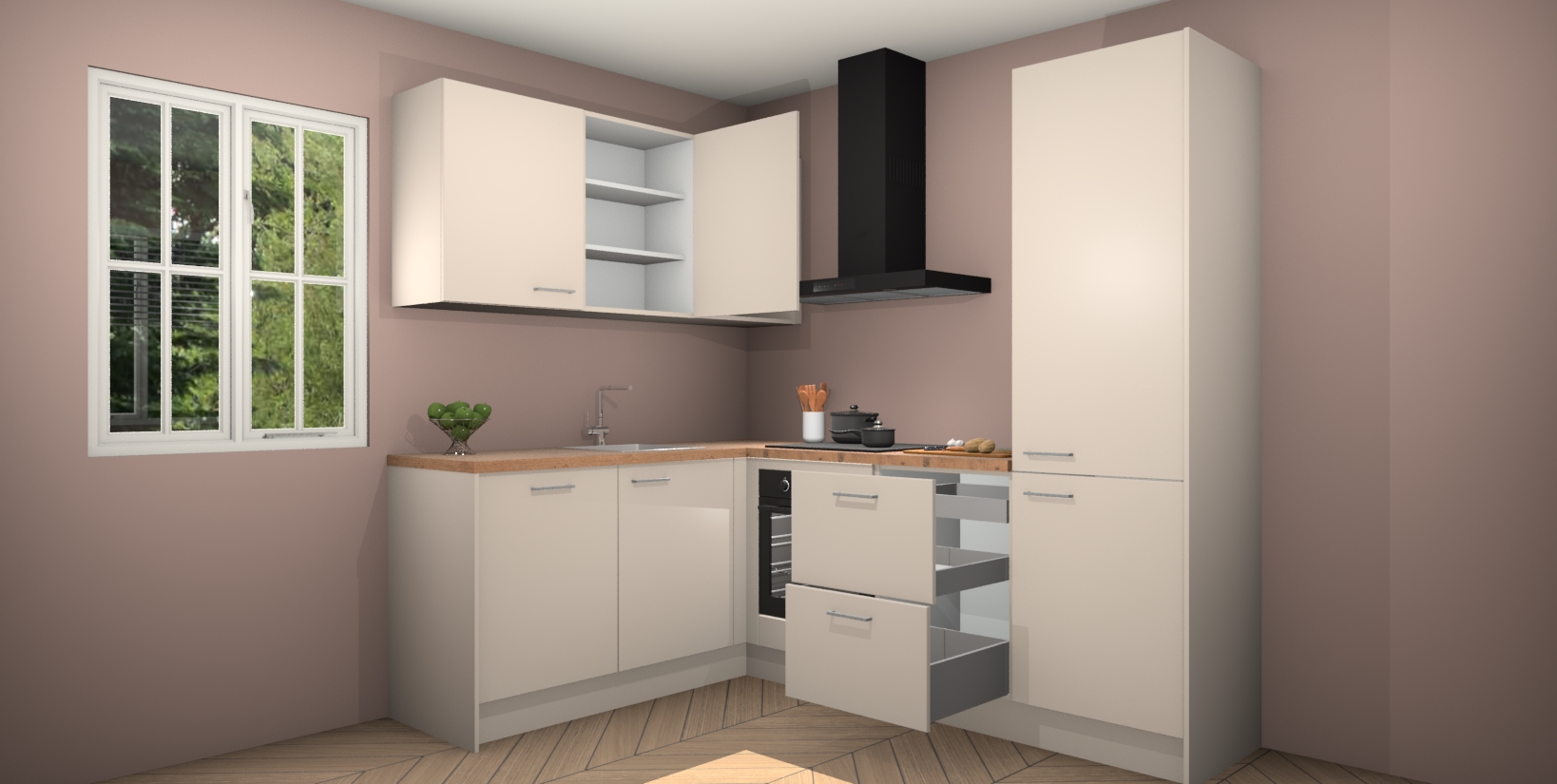 Inclusief plinten, stelpoten en werkblad
