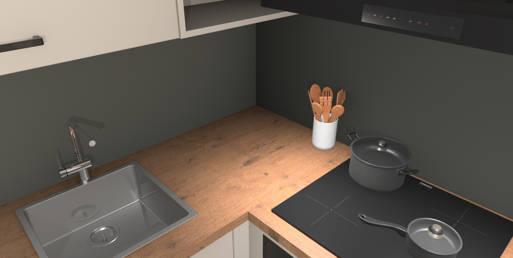 - Uitsparing van kookplaat, spoelbak en kraan dient u zelf te verzorgen.
