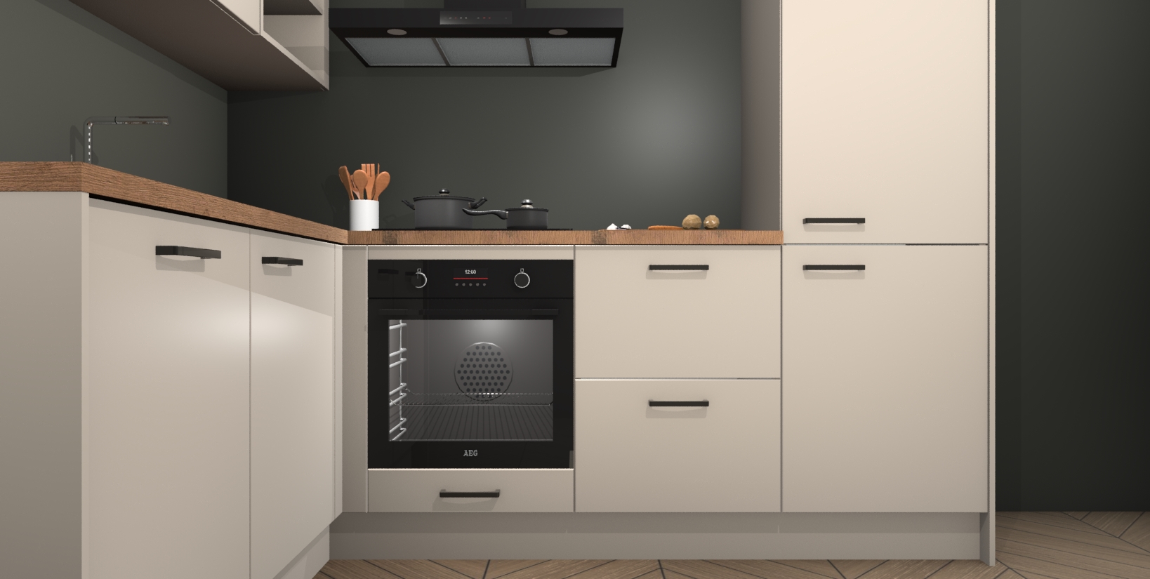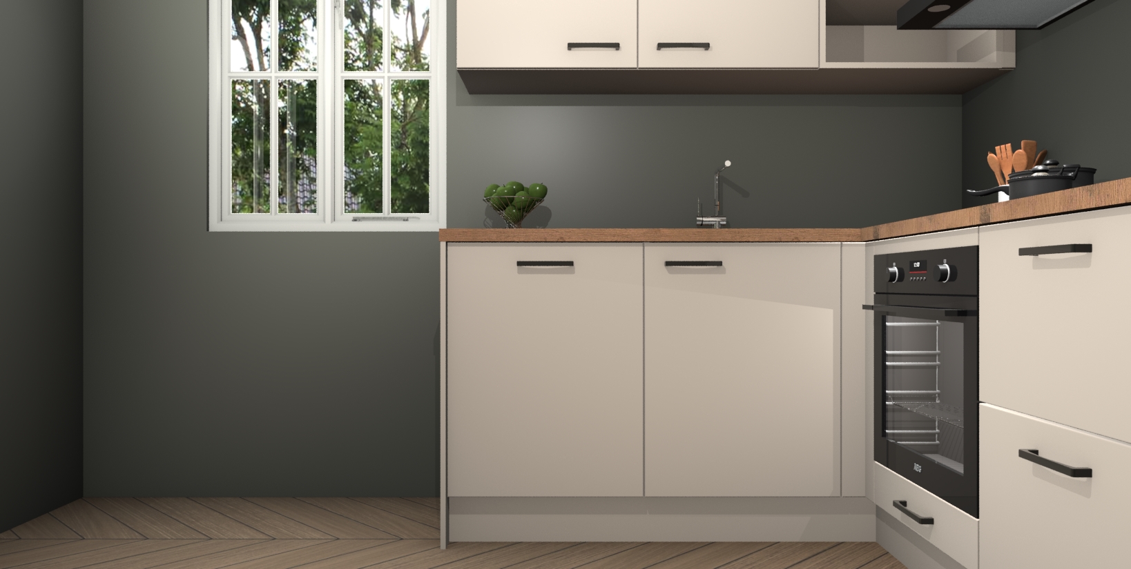Inclusief plinten, stelpoten en werkblad