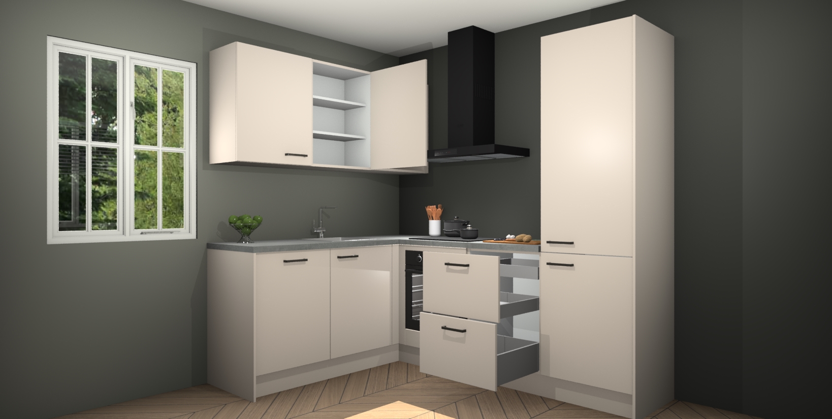 Inclusief plinten, stelpoten en werkblad