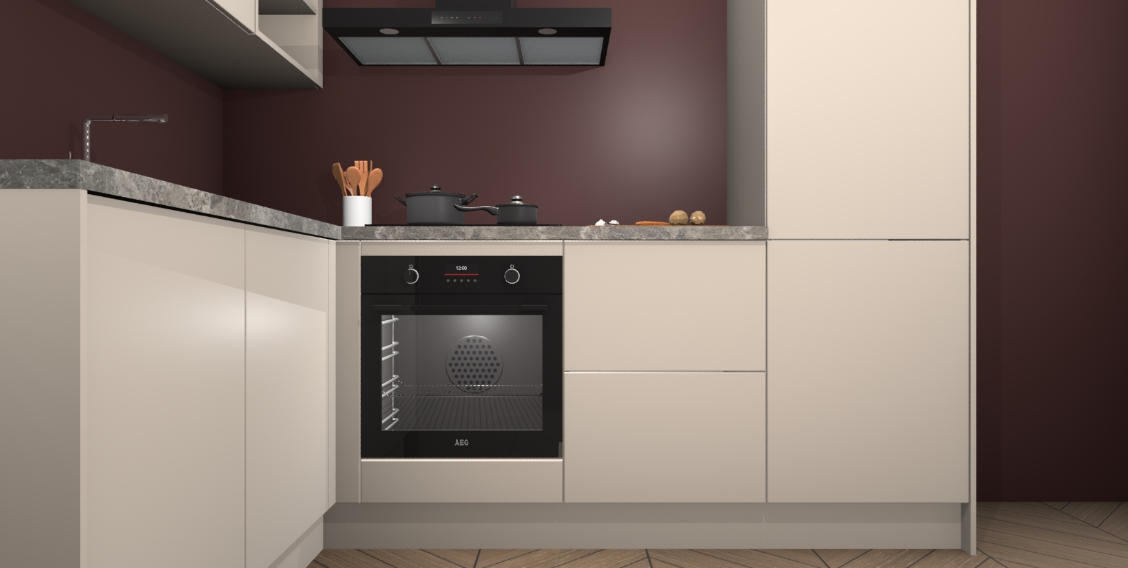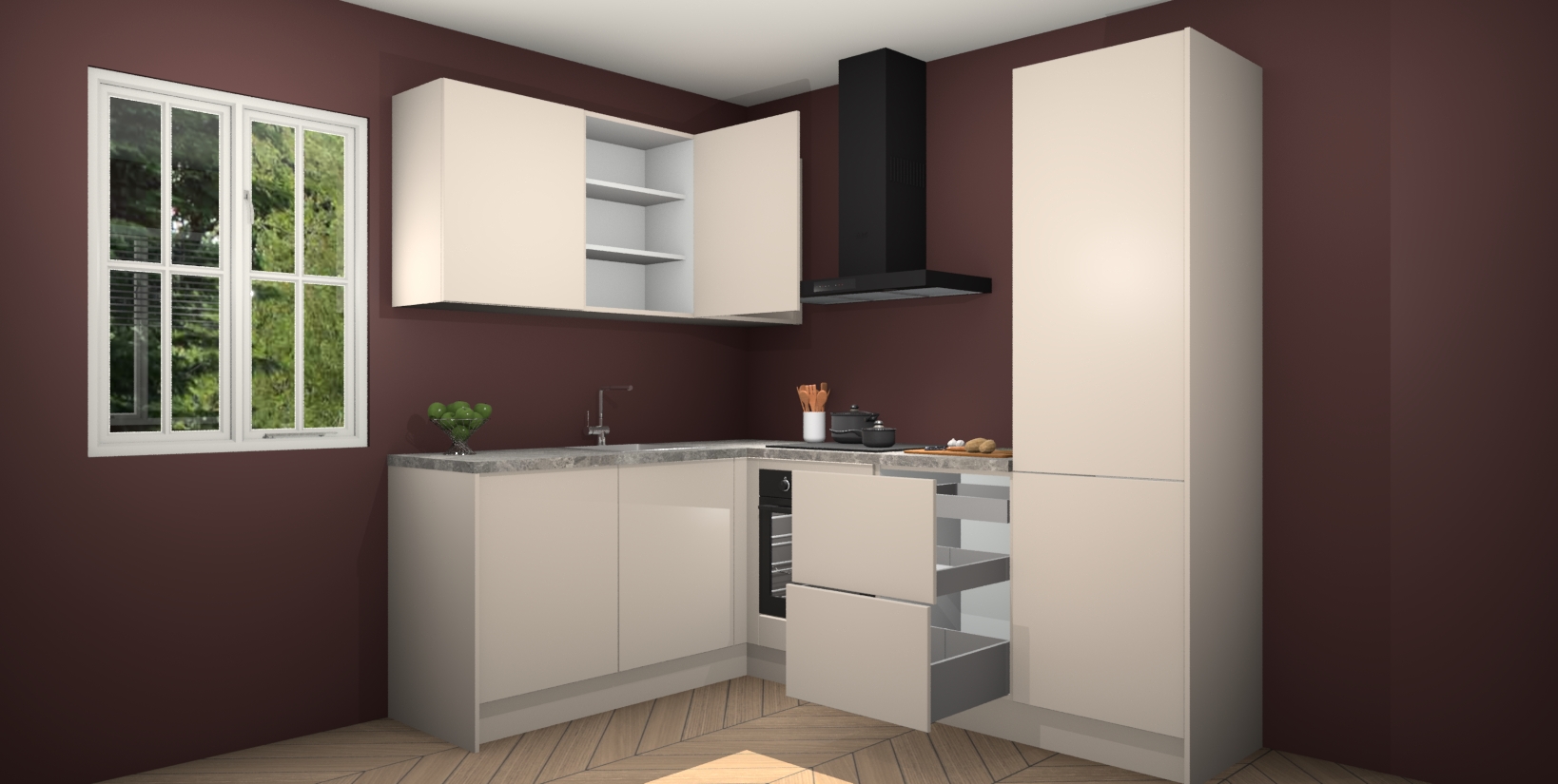 Inclusief plinten, stelpoten en werkblad