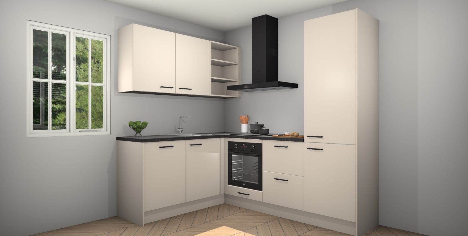 Voor nog meer gemak heeft deze keuken vijf ingebouwde apparaten - oven, inductiekookplaat, afzuigkap, vaatwasser en koelkast. Bovendien hebben alle kasten softclose deuren voor extra comfort bij het sluiten. Dit alles voor een verrassend lage vaste prijs - u vindt nergens anders een betere deal!