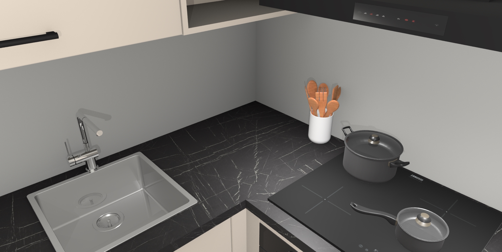 - Uitsparing van kookplaat, spoelbak en kraan dient u zelf te verzorgen.