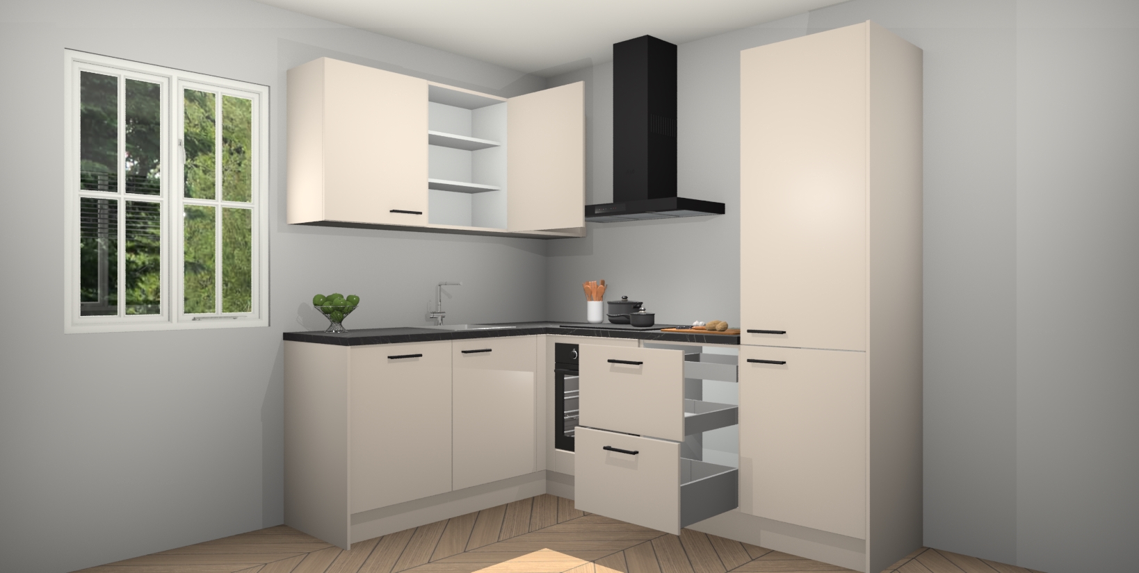 In deze box zijn alle kleuren verzameld van de deuren en werkbladen. Vraag de gratis kleurenbox aan en kijk thuis rustig verder!