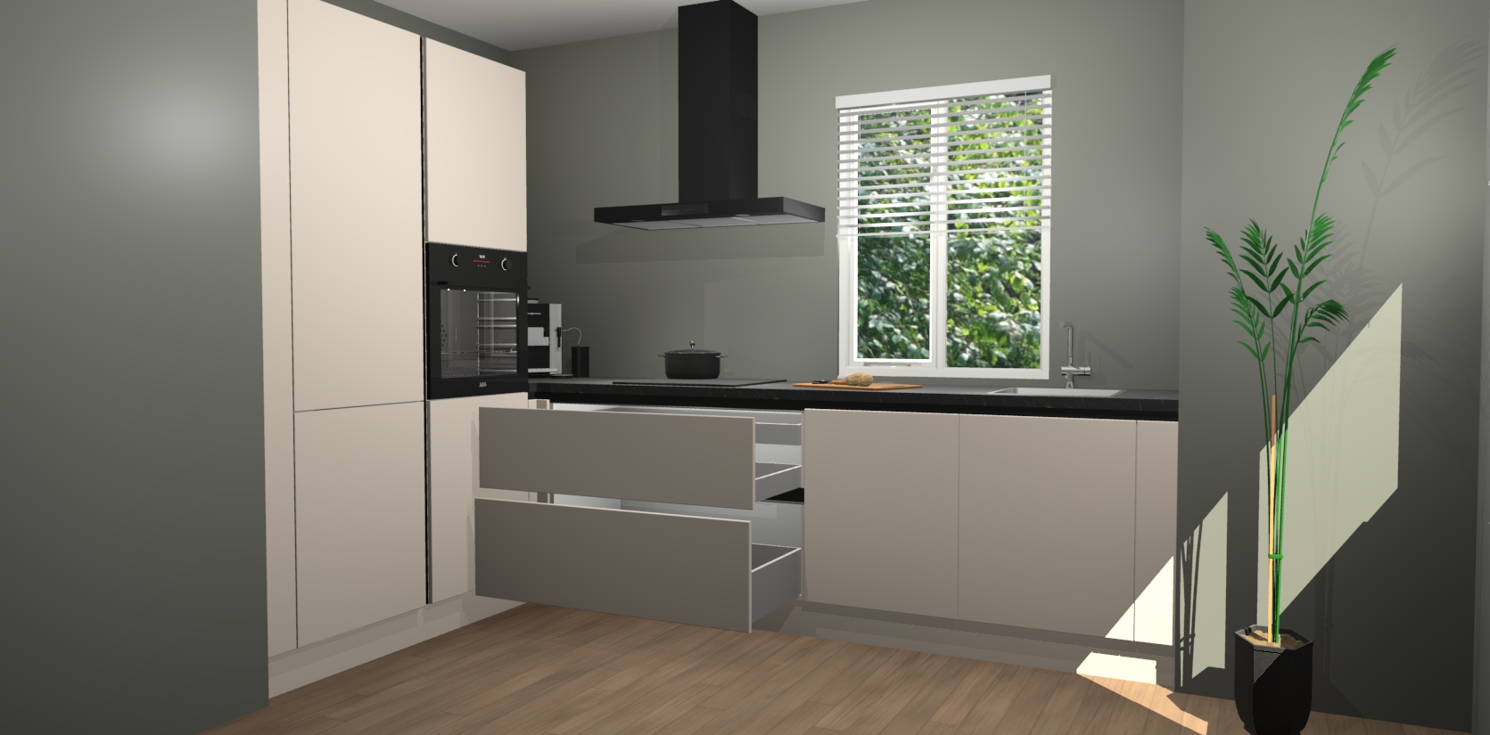 Maak kennis met de kasjmier keuken Bourgondië - de perfecte aanvulling voor uw moderne keuken! Ervaar tijdloos design, elegantie en een chique uitstraling met onze zwarte handgrepen, soft-close deuren en veel opbergruimte. Dit alles wordt aangeboden tegen een vaste lage prijs voor ongeëvenaarde Duitse keukenkwaliteit!