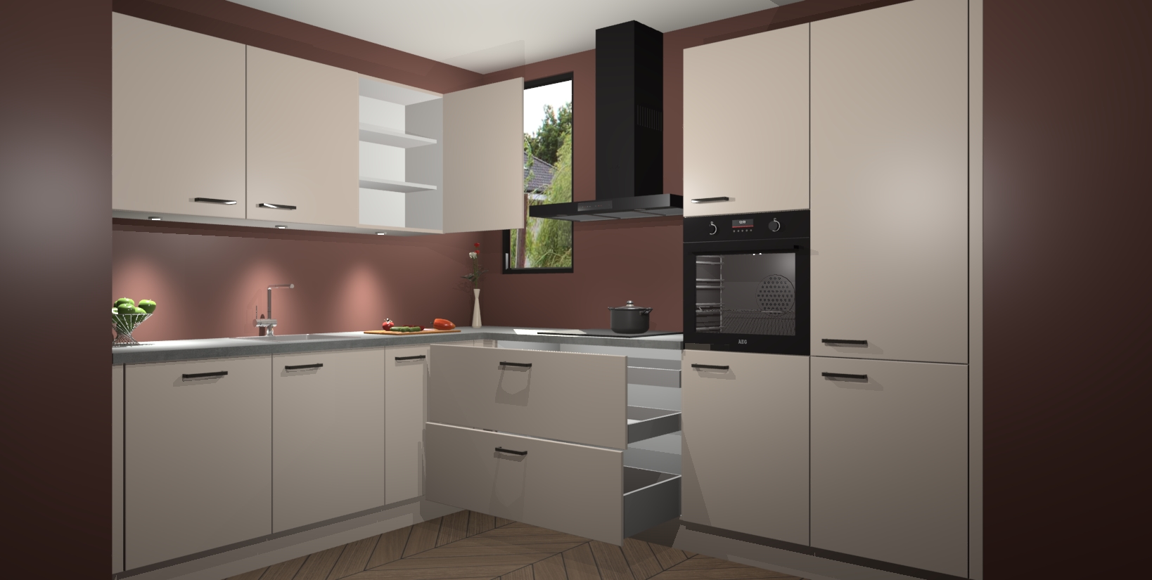 Inclusief plinten, stelpoten en werkblad
