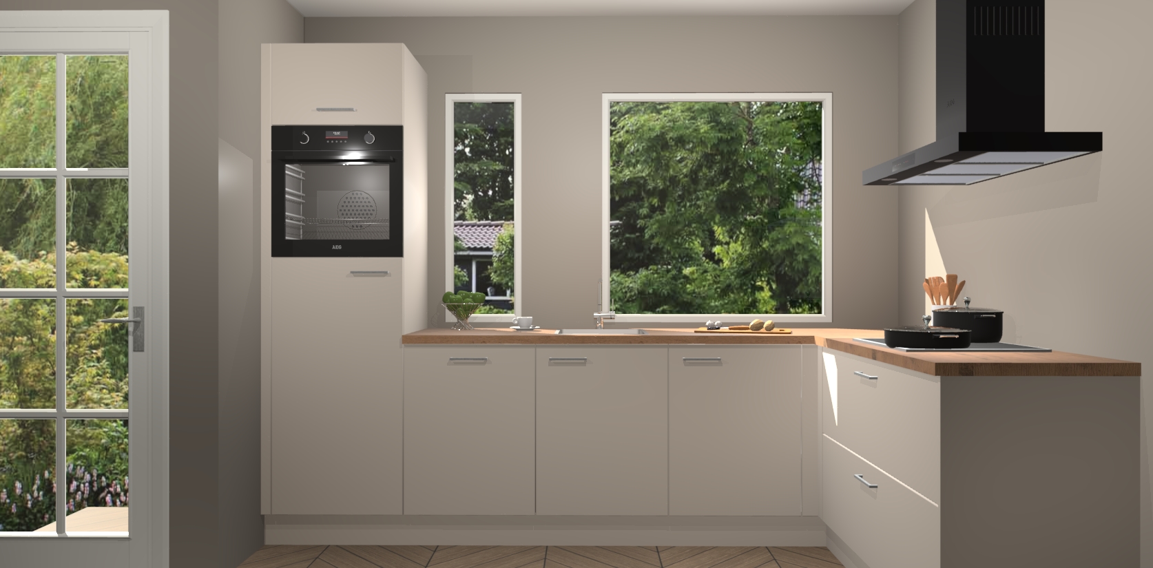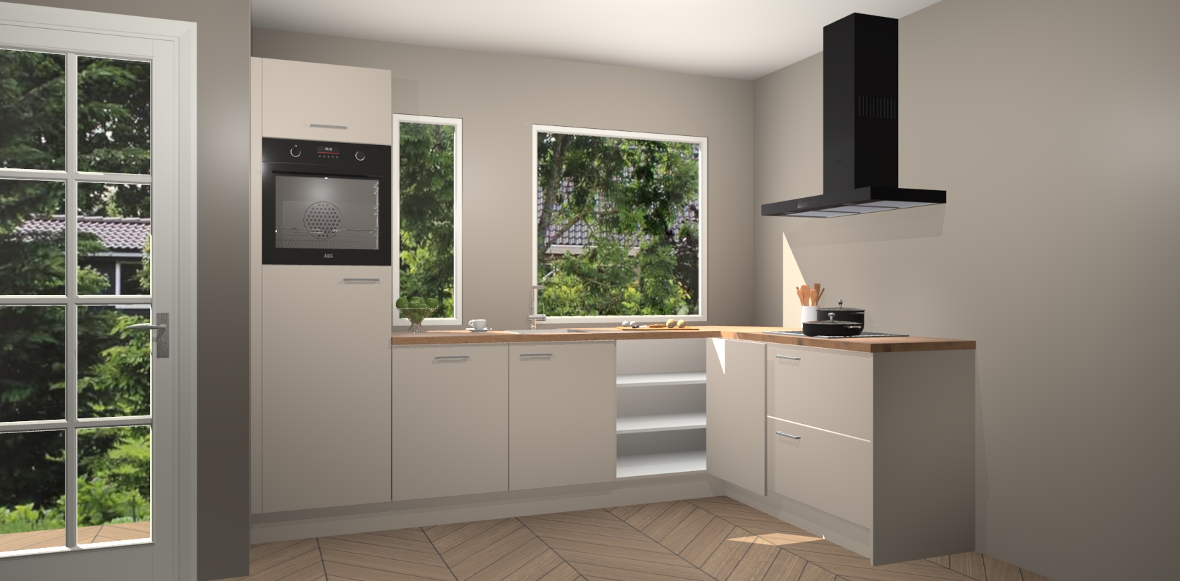 Deze complete keuken wordt geleverd met 5 inbouwapparaten: een oven, inductiekookplaat, afzuigkap, vaatwasser en koelkast. De toestellen kunnen na bestelling ook gemakkelijk worden opgewaardeerd naar AEG. Bovendien is elke deur in deze keuken voorzien van handige softclose technologie voor eenvoudig gebruik! Als een leuke toevoeging zit in deze keuken ook een carrousel, zo hoef je niet meer de hoek in duiken om iets te pakken.