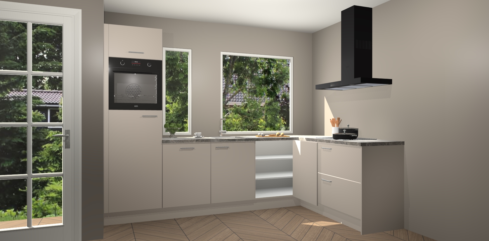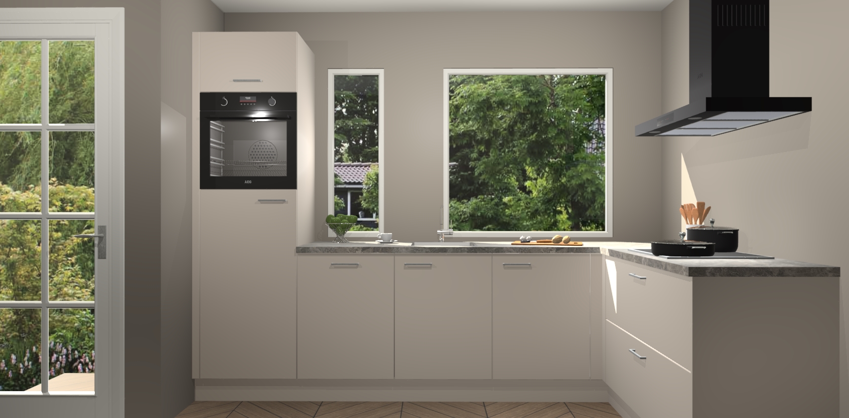 Deze complete keuken wordt geleverd met 5 inbouwapparaten: een oven, inductiekookplaat, afzuigkap, vaatwasser en koelkast. De toestellen kunnen na bestelling ook gemakkelijk worden opgewaardeerd naar AEG. Bovendien is elke deur in deze keuken voorzien van handige softclose technologie voor eenvoudig gebruik! Als een leuke toevoeging zit in deze keuken ook een carrousel, zo hoef je niet meer de hoek in duiken om iets te pakken.