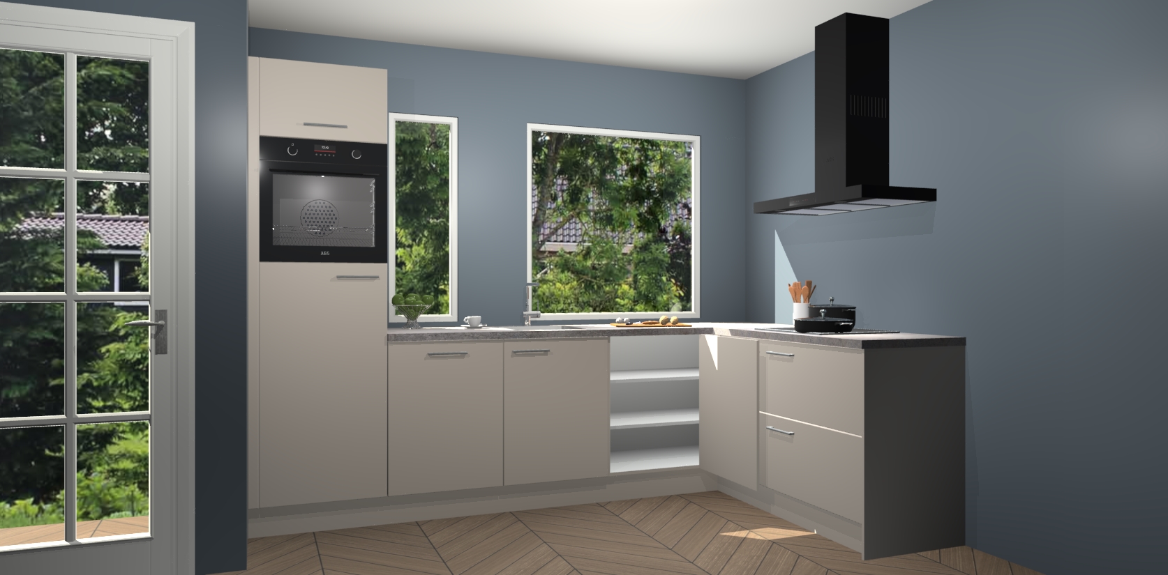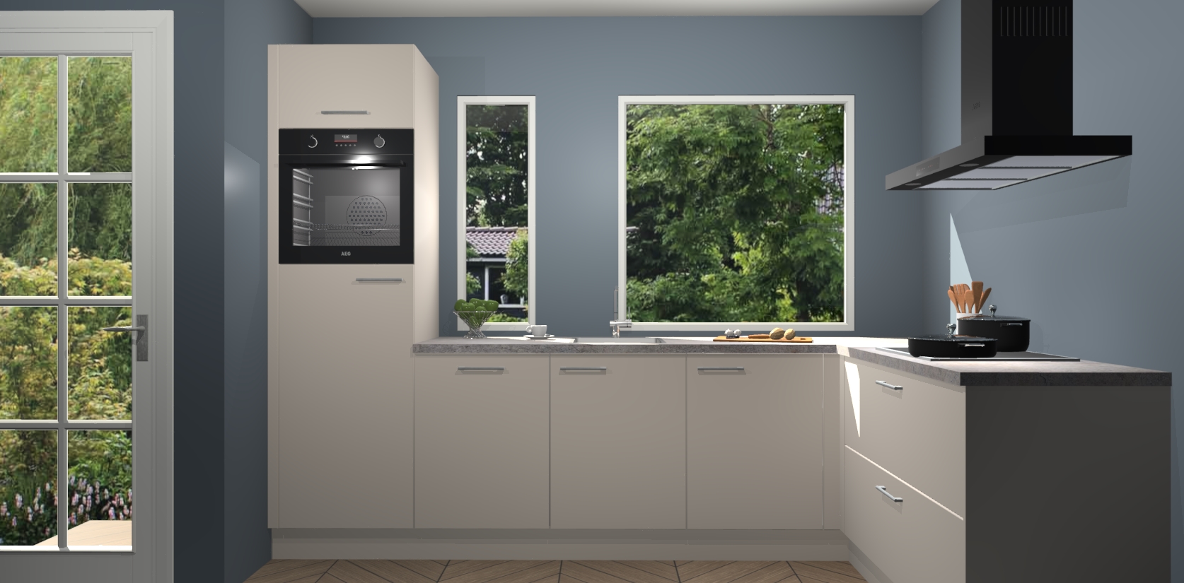 Deze complete keuken wordt geleverd met 5 inbouwapparaten: een oven, inductiekookplaat, afzuigkap, vaatwasser en koelkast. De toestellen kunnen na bestelling ook gemakkelijk worden opgewaardeerd naar AEG. Bovendien is elke deur in deze keuken voorzien van handige softclose technologie voor eenvoudig gebruik! Als een leuke toevoeging zit in deze keuken ook een carrousel, zo hoef je niet meer de hoek in duiken om iets te pakken.