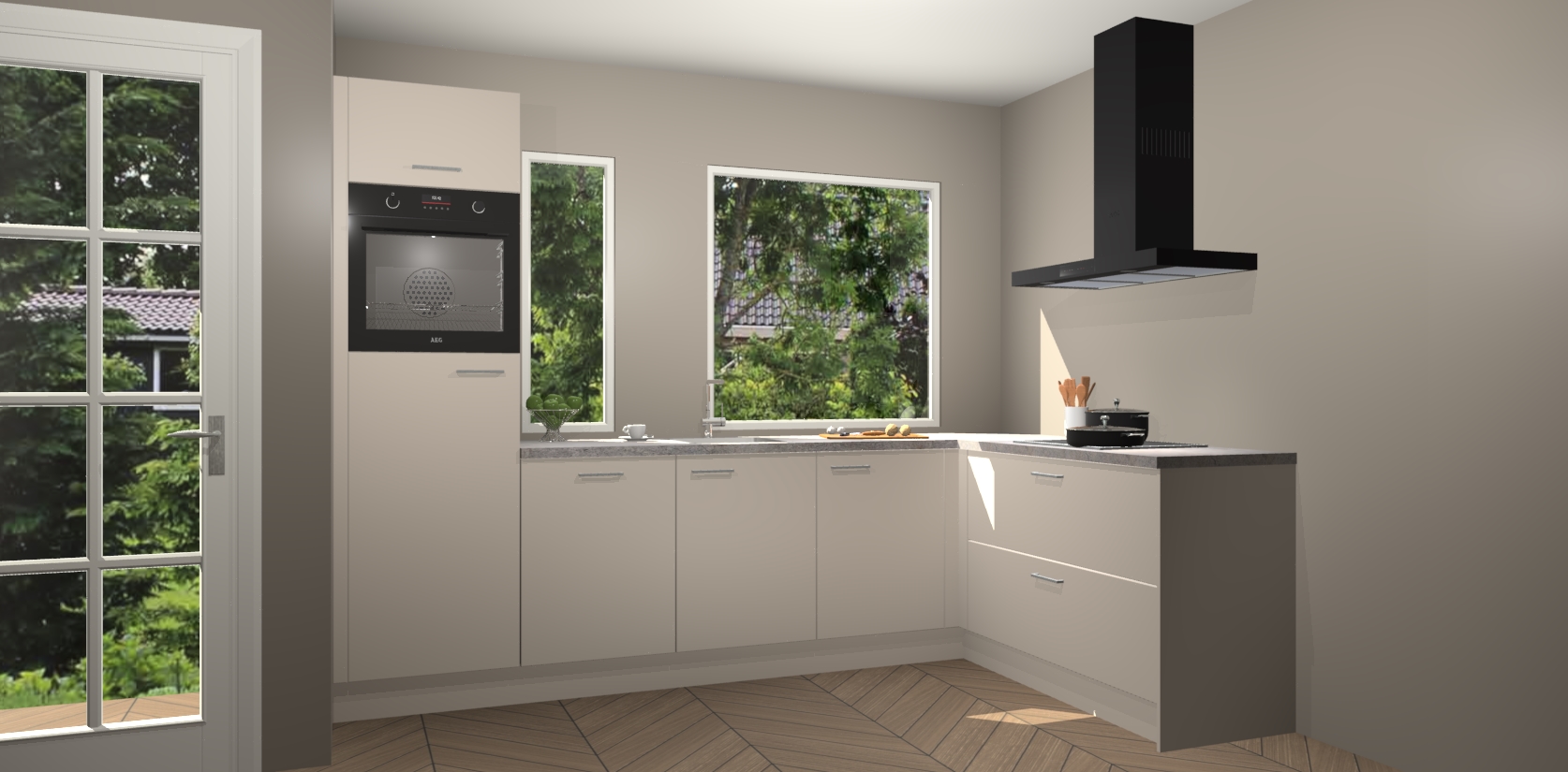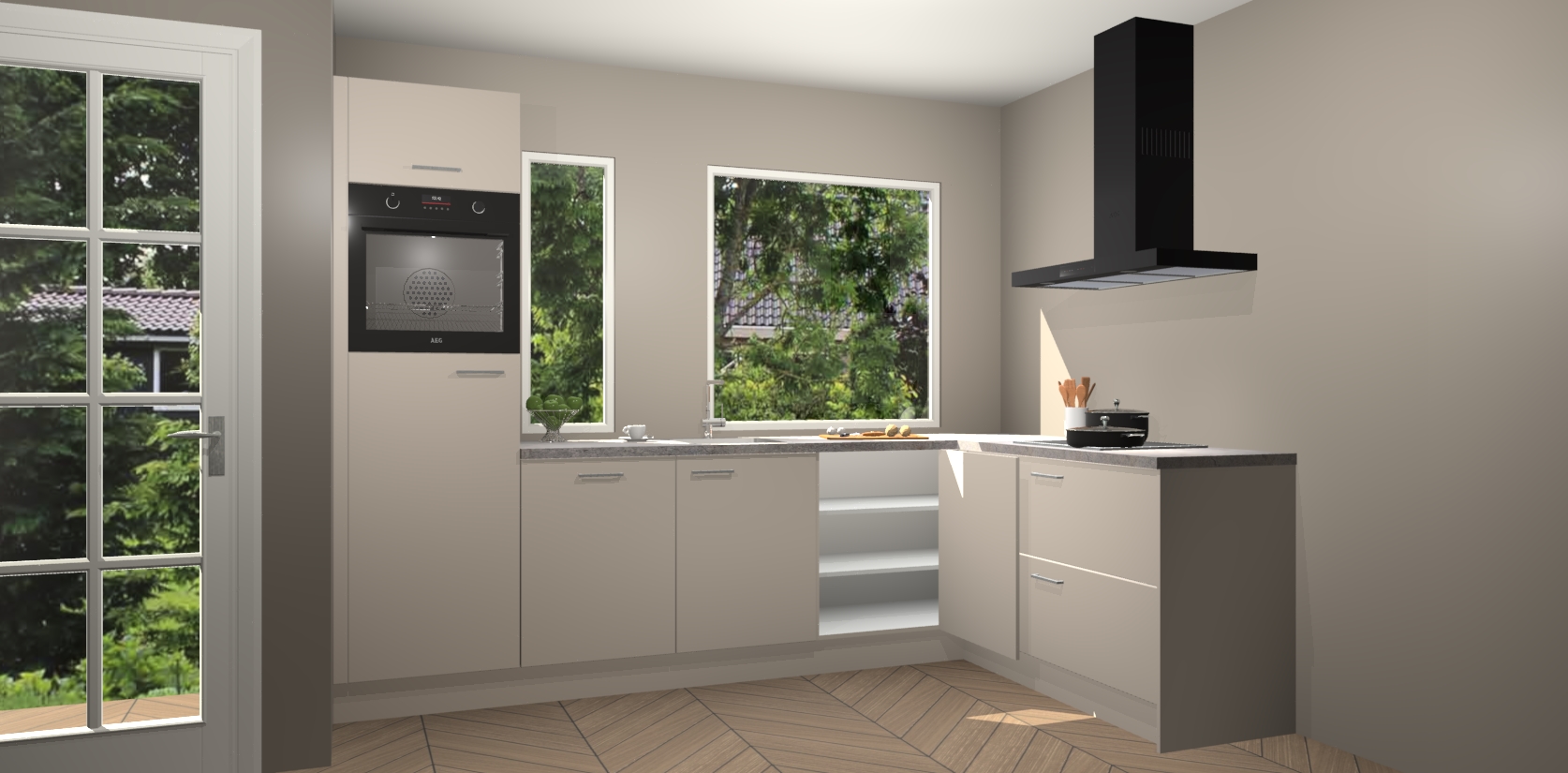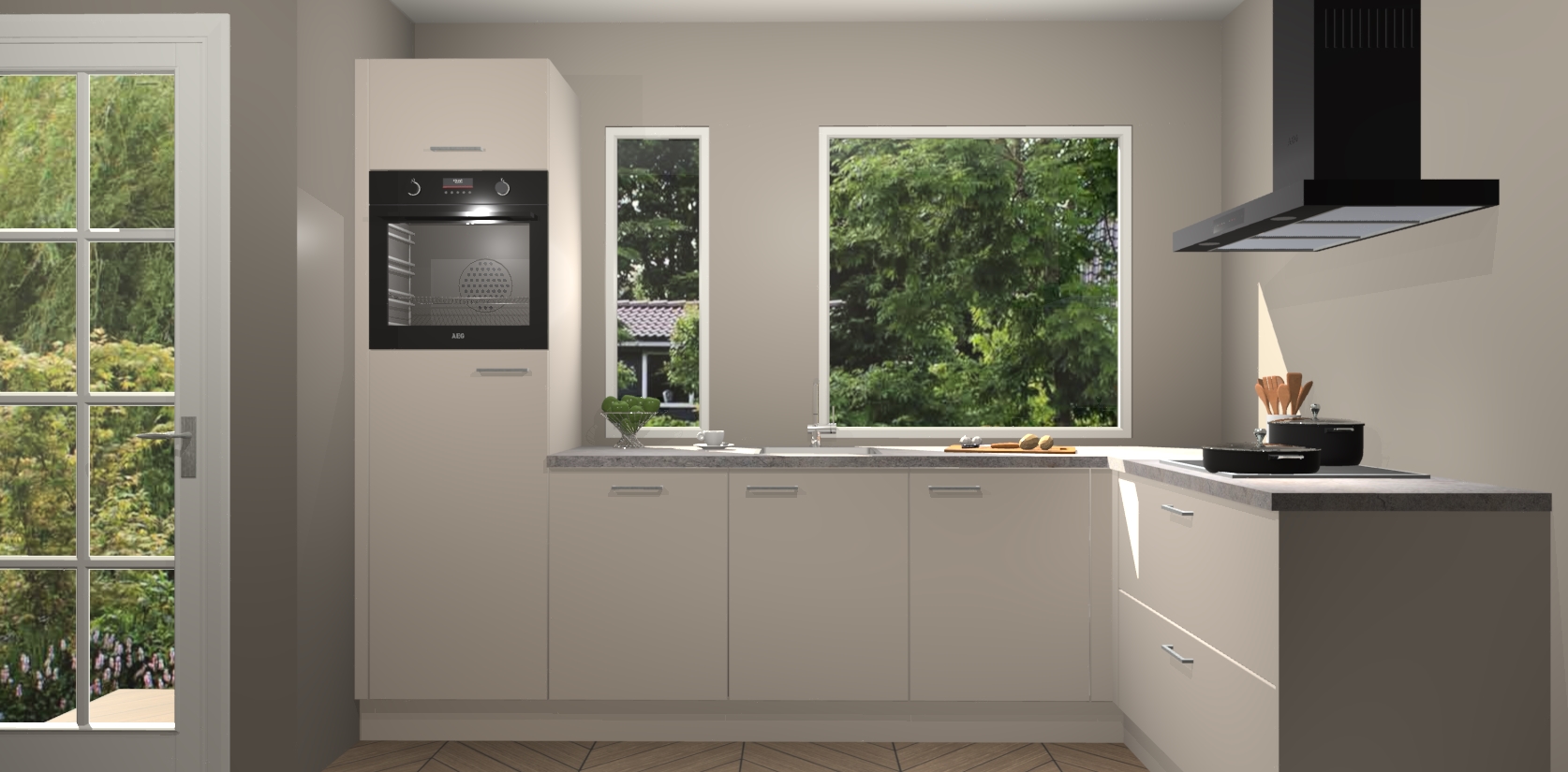 Deze complete keuken wordt geleverd met 5 inbouwapparaten: een oven, inductiekookplaat, afzuigkap, vaatwasser en koelkast. De toestellen kunnen na bestelling ook gemakkelijk worden opgewaardeerd naar AEG. Bovendien is elke deur in deze keuken voorzien van handige softclose technologie voor eenvoudig gebruik! Als een leuke toevoeging zit in deze keuken ook een carrousel, zo hoef je niet meer de hoek in duiken om iets te pakken.