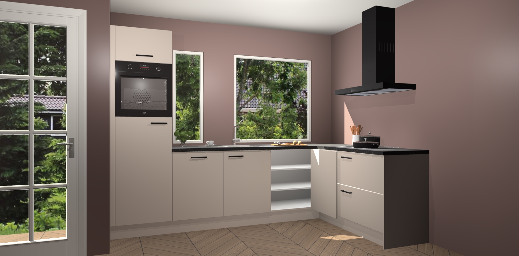 Deze complete keuken wordt geleverd met 5 inbouwapparaten: een oven, inductiekookplaat, afzuigkap, vaatwasser en koelkast. De toestellen kunnen na bestelling ook gemakkelijk worden opgewaardeerd naar AEG. Bovendien is elke deur in deze keuken voorzien van handige softclose technologie voor eenvoudig gebruik! Als een leuke toevoeging zit in deze keuken ook een carrousel, zo hoef je niet meer de hoek in duiken om iets te pakken.