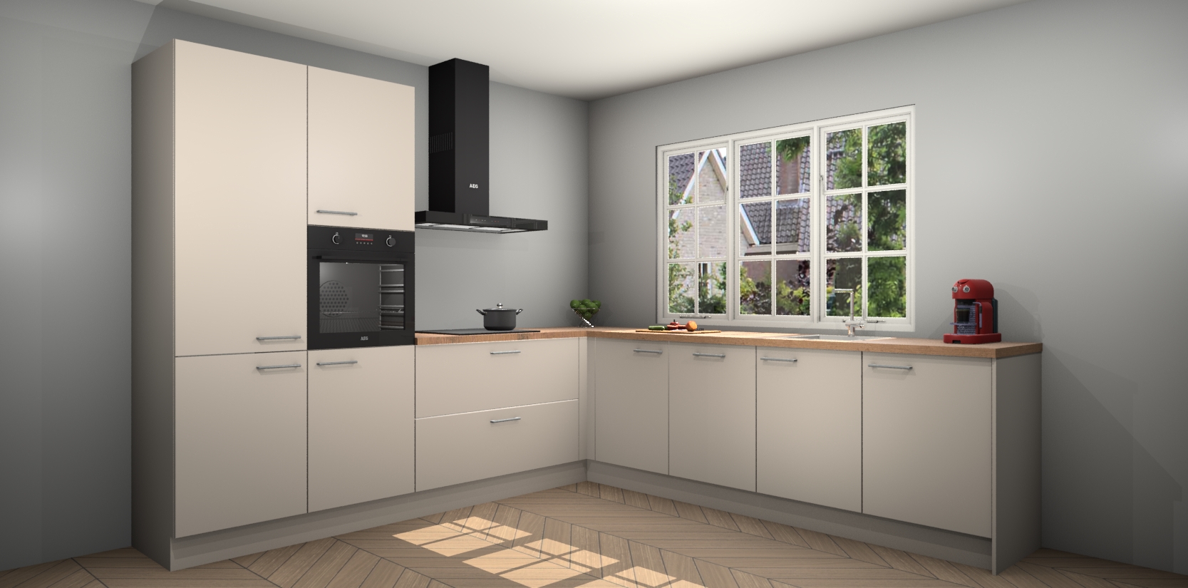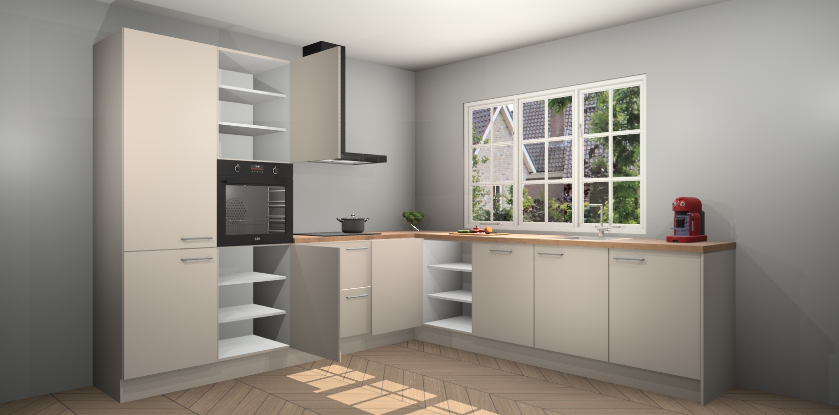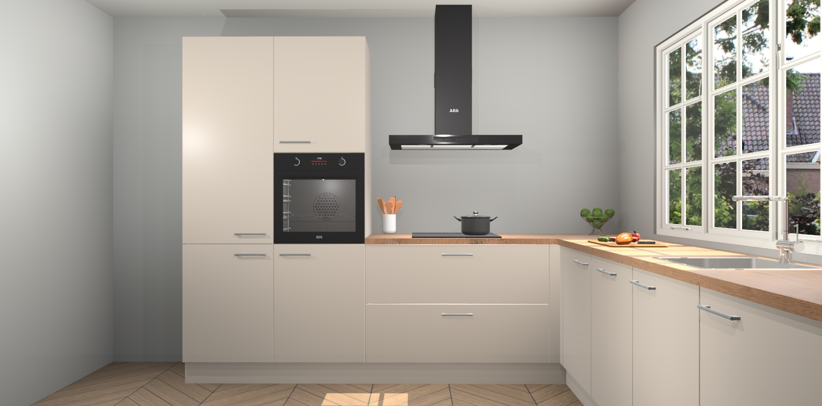 De keuken heeft veel opbergruimte, waardoor u alle ingrediënten gemakkelijk bereikbaar hebt staan. En daarnaast bevat deze volledig uitgeruste keuken ook 5 ingebouwde apparaten: een oven, inductiekookplaat, afzuigkap, vaatwasser en koelkast. Deze zijn heel eenvoudig na bestellen te upgraden naar AEG als u dit wilt. Bovendien zijn de softclose-kastdeuren ideaal; geef ze gewoon even een tikje en ze sluiten automatisch met geruisloze precisie.