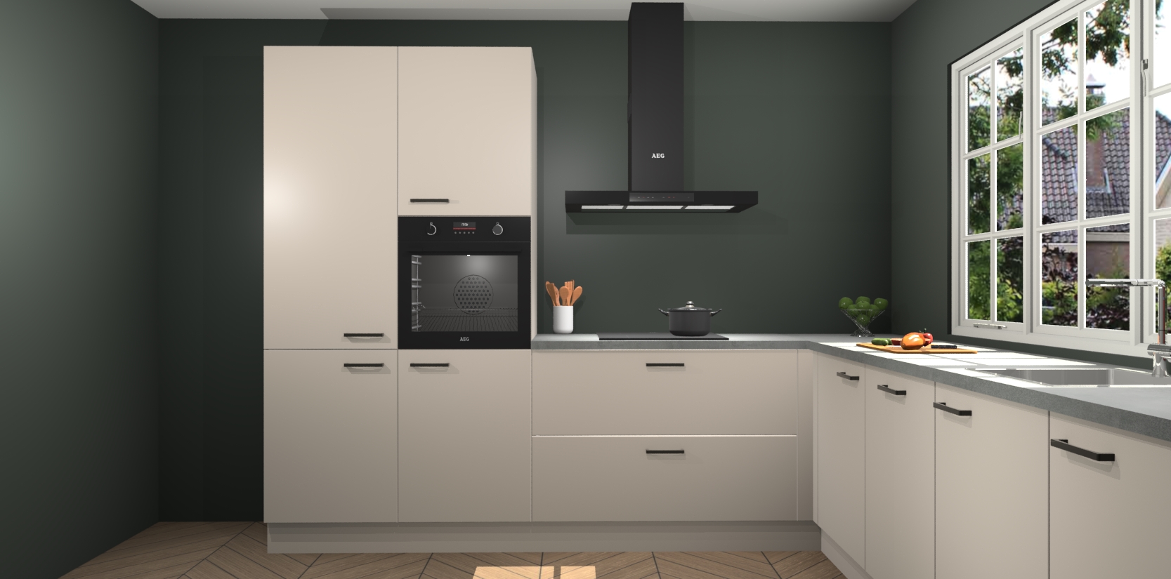 De keuken heeft veel opbergruimte, waardoor u alle ingrediënten gemakkelijk bereikbaar hebt staan. En daarnaast bevat deze volledig uitgeruste keuken ook 5 ingebouwde apparaten: een oven, inductiekookplaat, afzuigkap, vaatwasser en koelkast. Deze zijn heel eenvoudig na bestellen te upgraden naar AEG als u dit wilt. Bovendien zijn de softclose-kastdeuren ideaal; geef ze gewoon even een tikje en ze sluiten automatisch met geruisloze precisie.