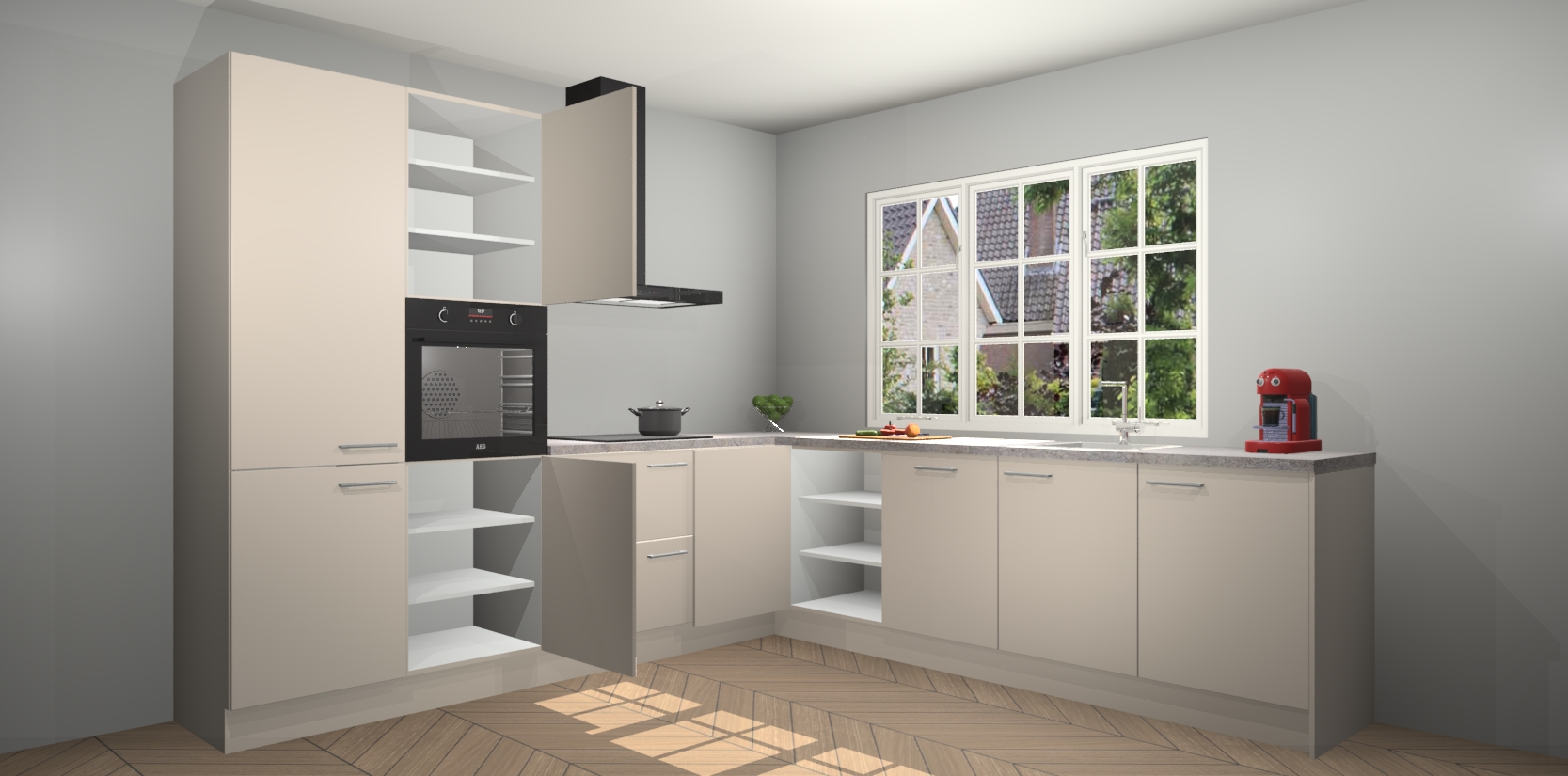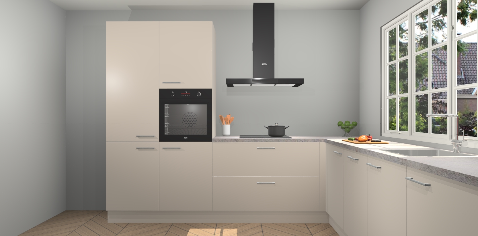 De keuken heeft veel opbergruimte, waardoor u alle ingrediënten gemakkelijk bereikbaar hebt staan. En daarnaast bevat deze volledig uitgeruste keuken ook 5 ingebouwde apparaten: een oven, inductiekookplaat, afzuigkap, vaatwasser en koelkast. Deze zijn heel eenvoudig na bestellen te upgraden naar AEG als u dit wilt. Bovendien zijn de softclose-kastdeuren ideaal; geef ze gewoon even een tikje en ze sluiten automatisch met geruisloze precisie.