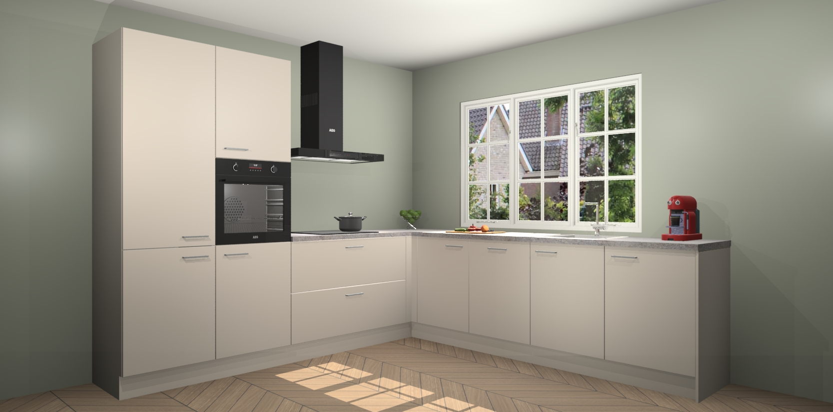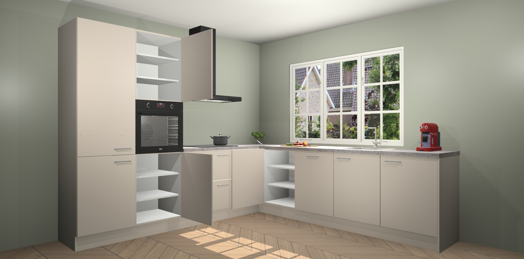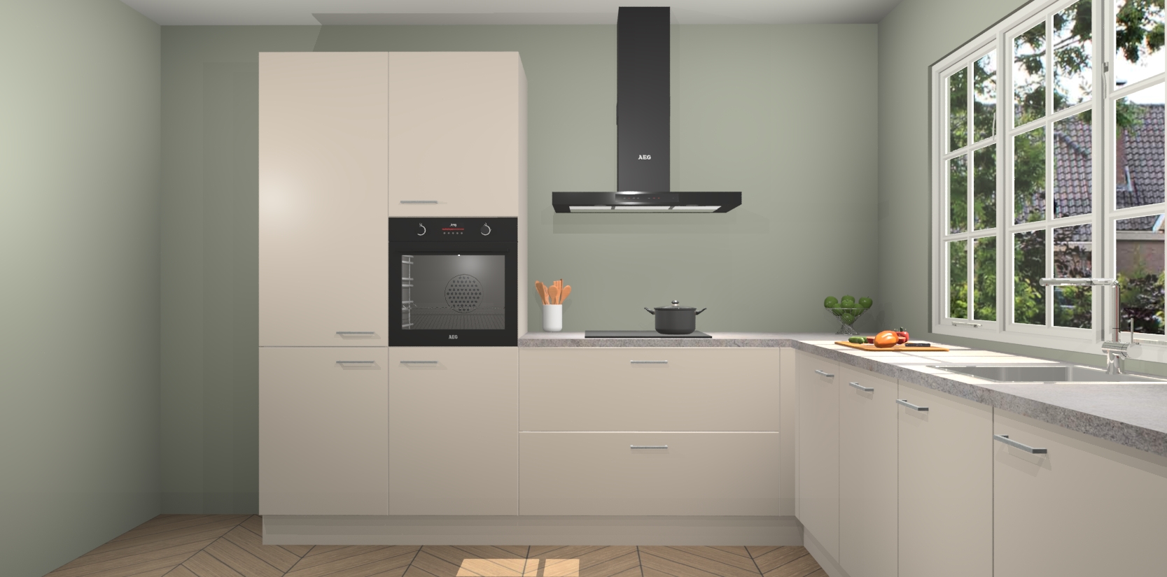 De keuken heeft veel opbergruimte, waardoor u alle ingrediënten gemakkelijk bereikbaar hebt staan. En daarnaast bevat deze volledig uitgeruste keuken ook 5 ingebouwde apparaten: een oven, inductiekookplaat, afzuigkap, vaatwasser en koelkast. Deze zijn heel eenvoudig na bestellen te upgraden naar AEG als u dit wilt. Bovendien zijn de softclose-kastdeuren ideaal; geef ze gewoon even een tikje en ze sluiten automatisch met geruisloze precisie.