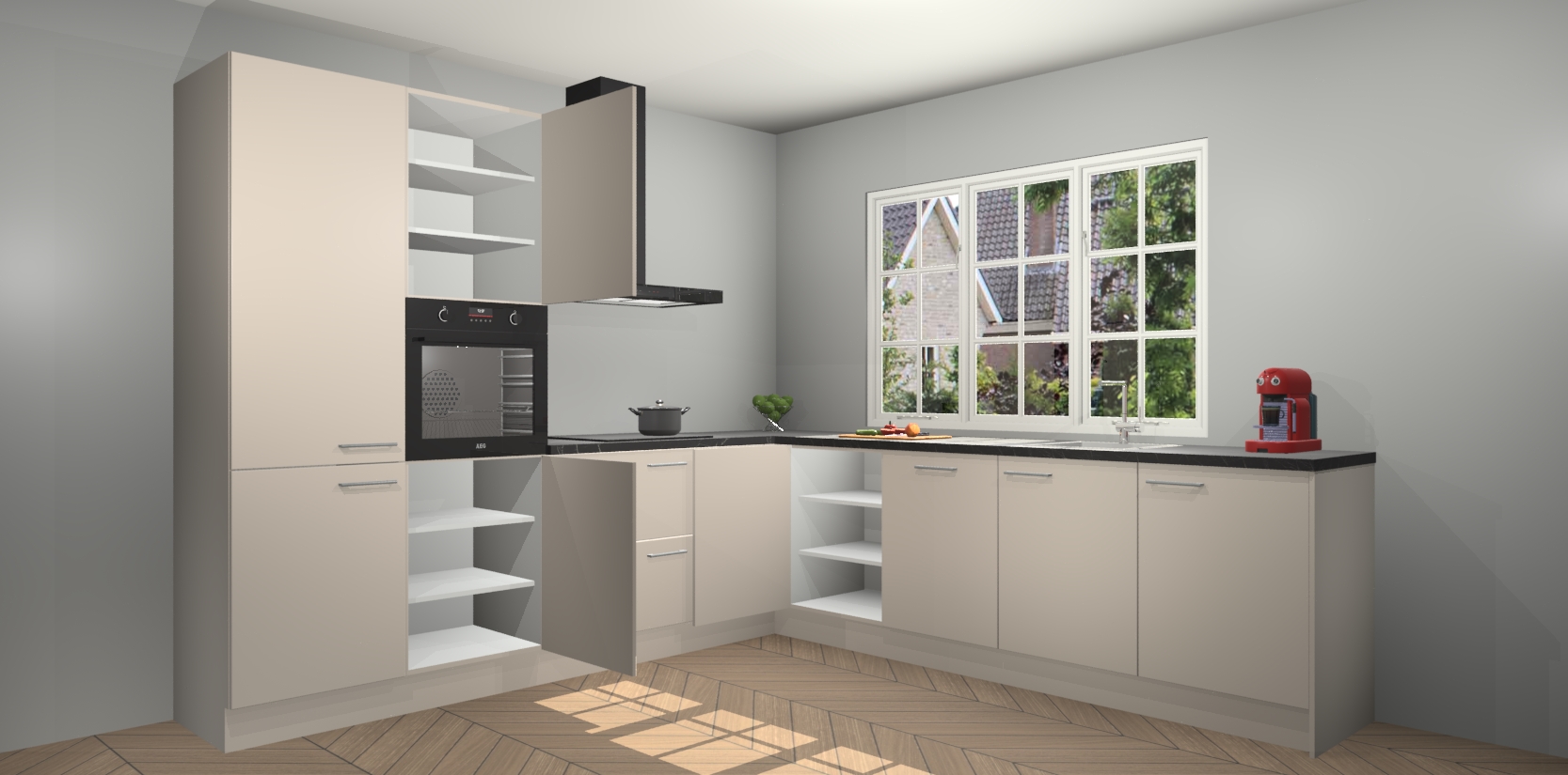 De keuken heeft veel opbergruimte, waardoor u alle ingrediënten gemakkelijk bereikbaar hebt staan. En daarnaast bevat deze volledig uitgeruste keuken ook 5 ingebouwde apparaten: een oven, inductiekookplaat, afzuigkap, vaatwasser en koelkast. Deze zijn heel eenvoudig na bestellen te upgraden naar AEG als u dit wilt. Bovendien zijn de softclose-kastdeuren ideaal; geef ze gewoon even een tikje en ze sluiten automatisch met geruisloze precisie.