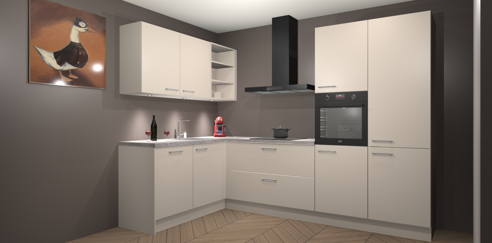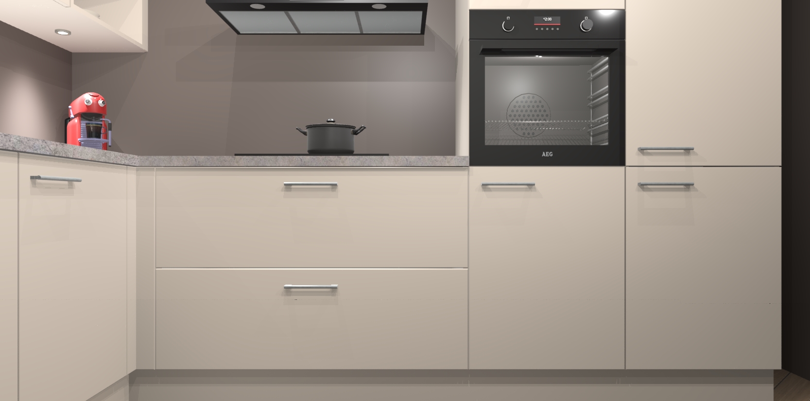 De kasjmier keuken Cognac is een adembenemend ontwerp met een modern en tijdloos uiterlijk. Deze luxe keuken straalt echt aristocratisch uit, waardoor uw koken plezieriger zal worden! Het prachtige design begint bij de hoekkeuken, wat perfect past bij elk type interieur. Bovendien bevat deze hoogwaardige set vijf inbouwapparaten - van oven tot koelkast - die via bestelling naar AEG geüpgraded kunnen worden!