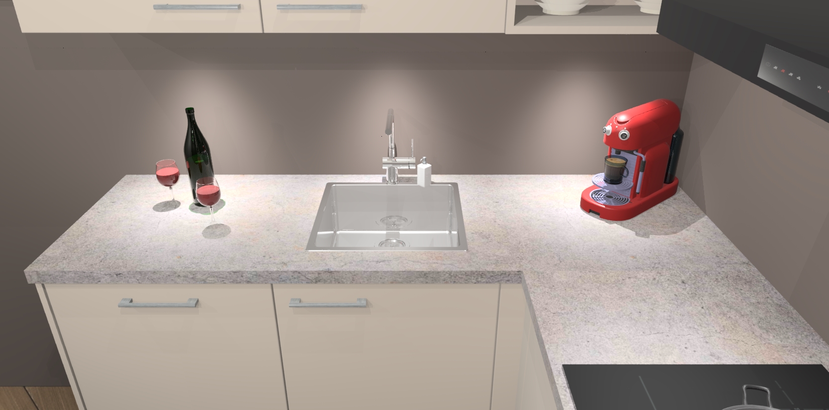 - Bij een hoekwerkblad zijn de hoeken in gevreesd en op maat gemaakt