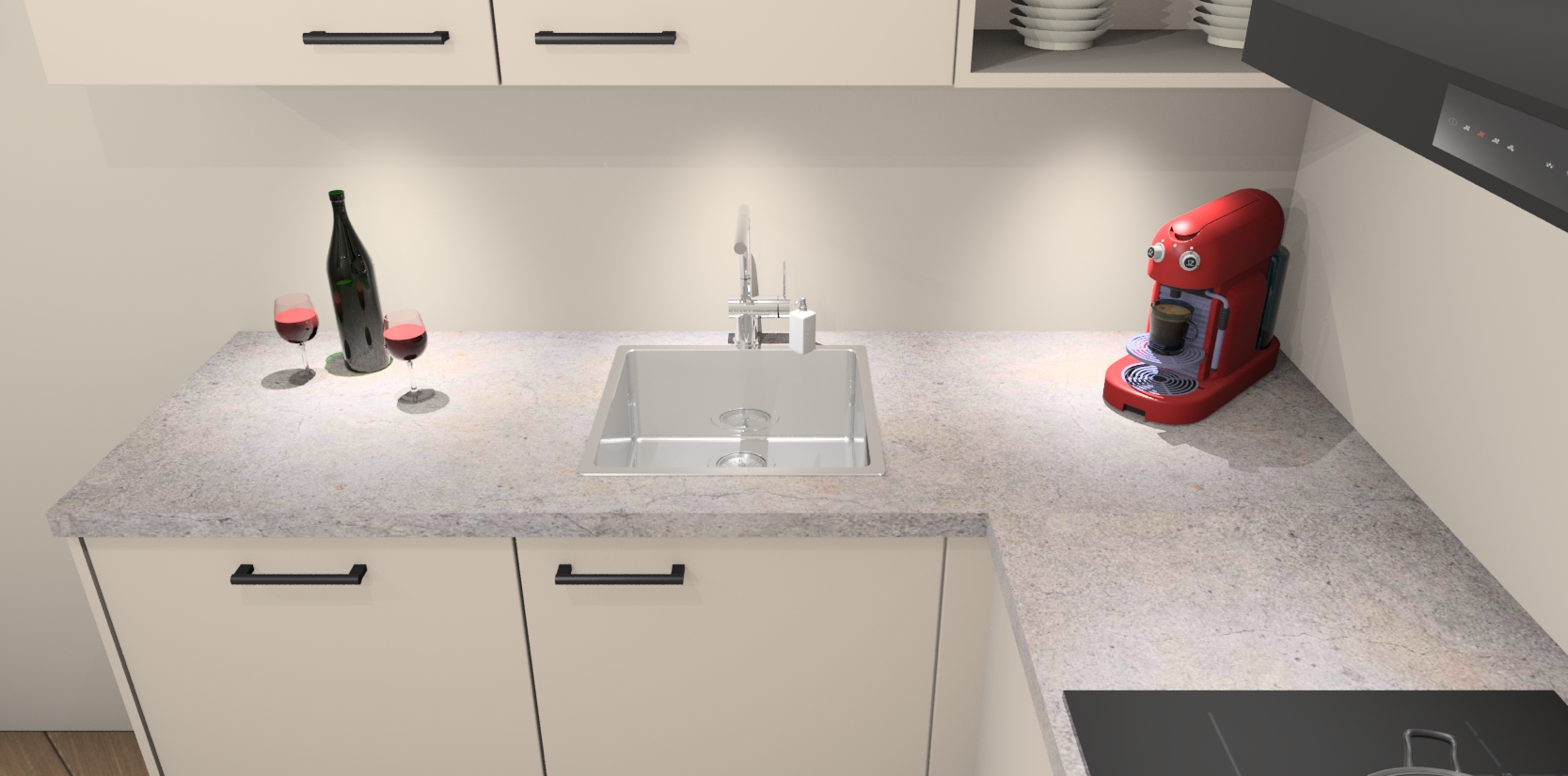 - Bij een hoekwerkblad zijn de hoeken in gevreesd en op maat gemaakt