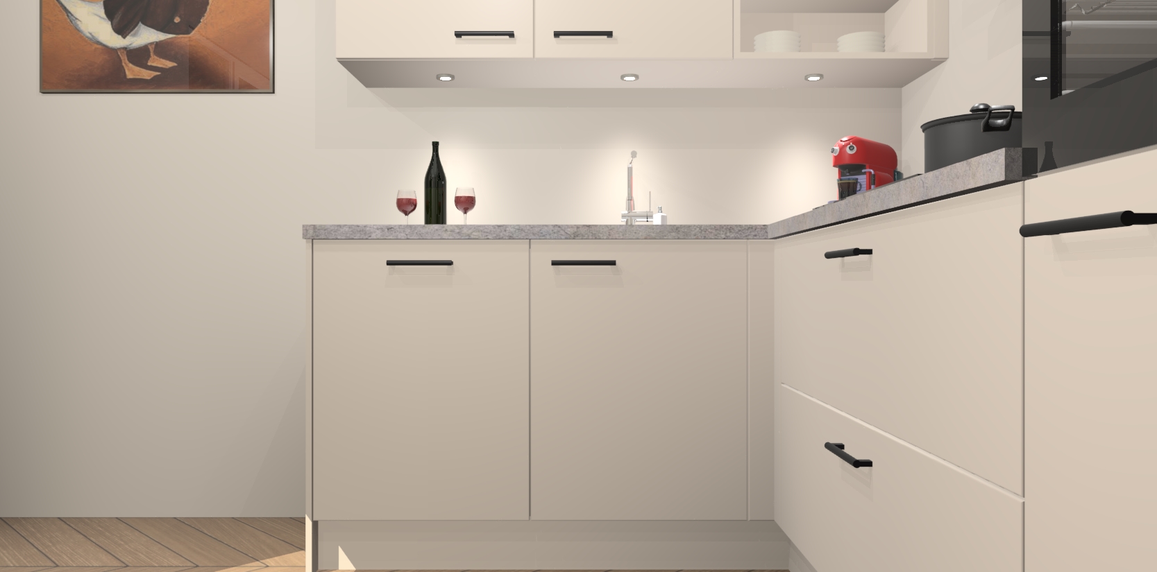 In deze box zijn alle kleuren verzameld van de deuren en werkbladen. Vraag de gratis kleurenbox aan en kijk thuis rustig verder!