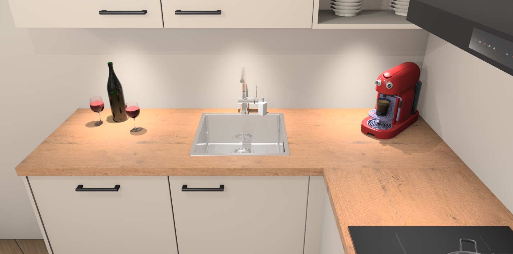 - Bij een hoekwerkblad zijn de hoeken in gevreesd en op maat gemaakt
