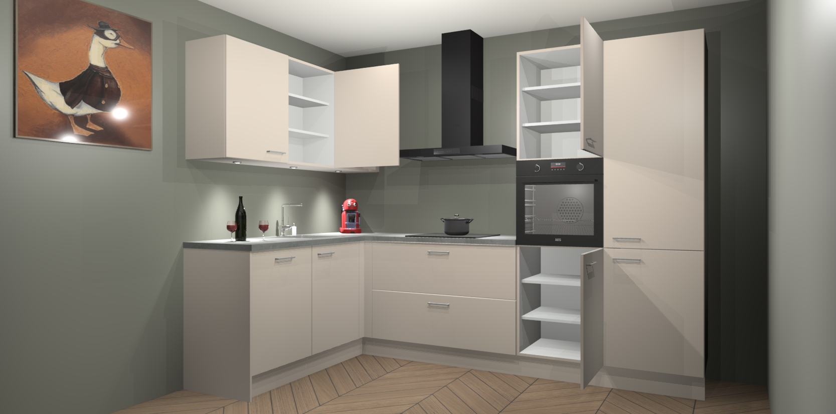 De kasjmier keuken Cognac gaat alleen maar om de beste keukenervaring. Kies gewoon de beste apparatuur en ongeëvenaarde Duitse constructie die u thuis wilt hebben en verander uw huiskamer hartelijkheid meteen in professionaliteit. Laat de toon weten dat u gemakkelijk kan genieten van alle luxe die u verdiend? Bestel nu de kasjmier keuken Cognac voor bij u thuis!
