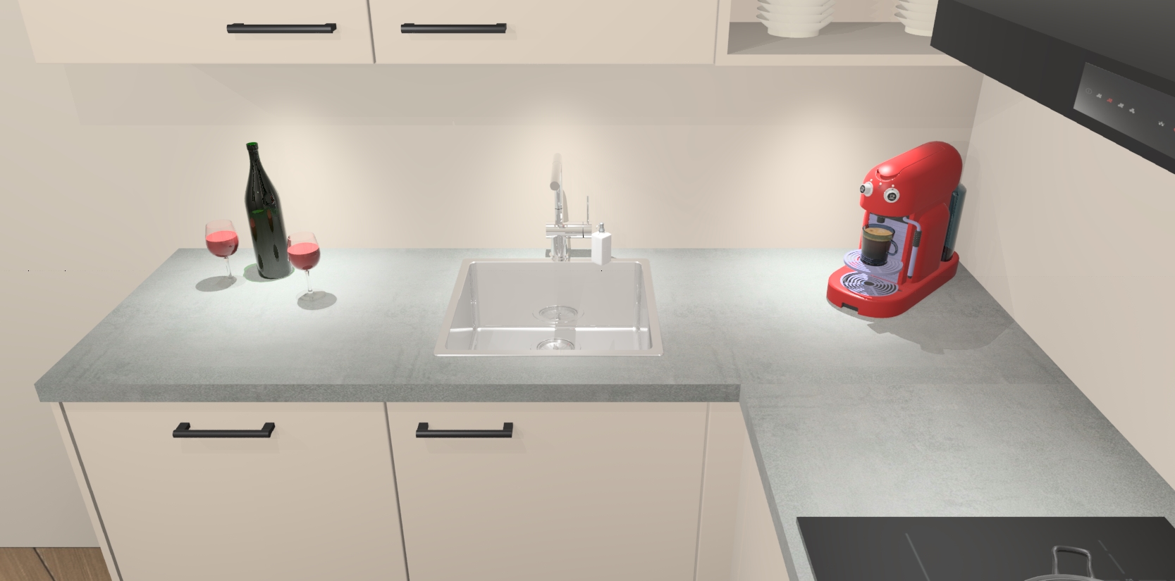 - Bij een hoekwerkblad zijn de hoeken in gevreesd en op maat gemaakt