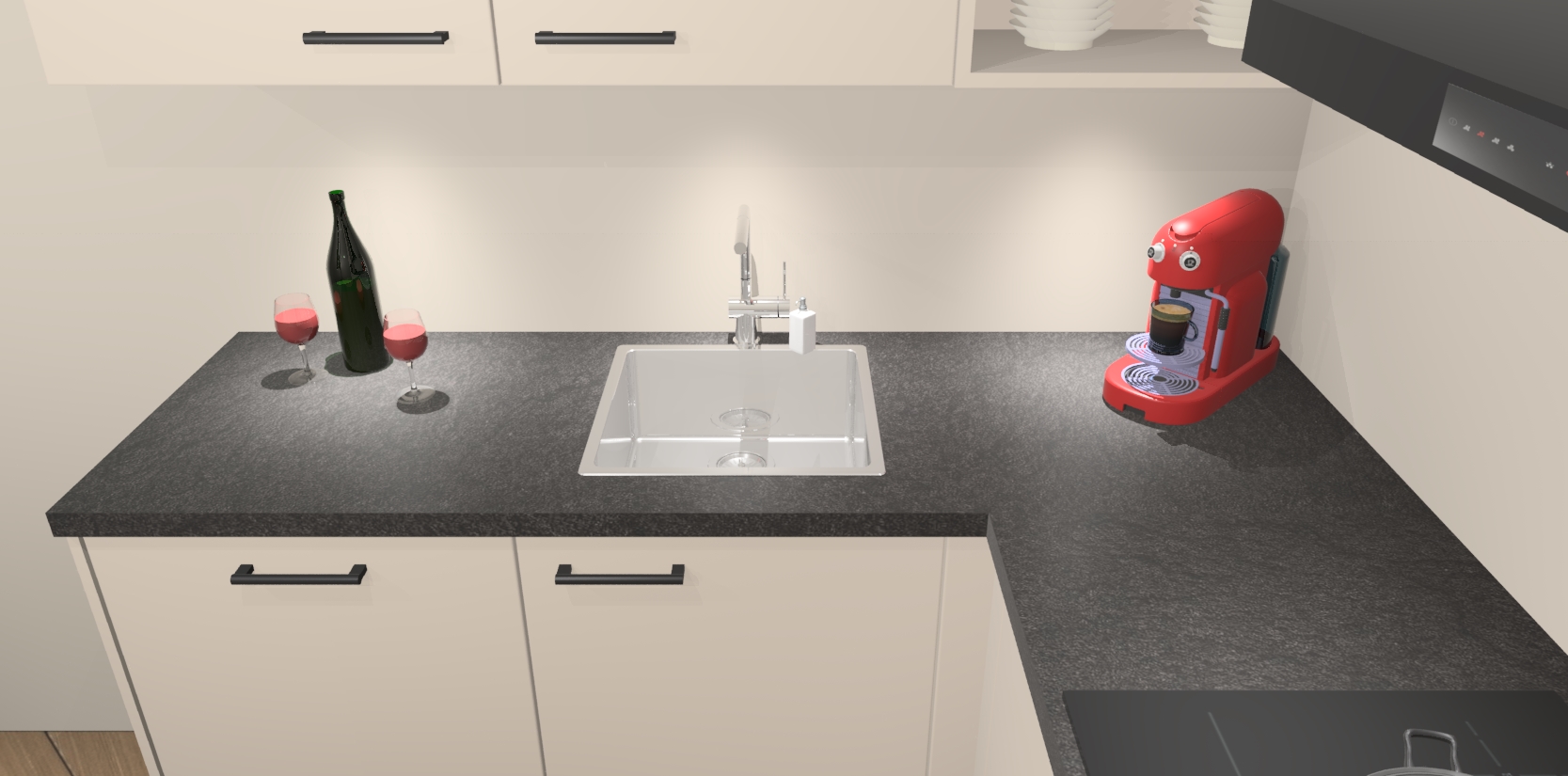 - Bij een hoekwerkblad zijn de hoeken in gevreesd en op maat gemaakt