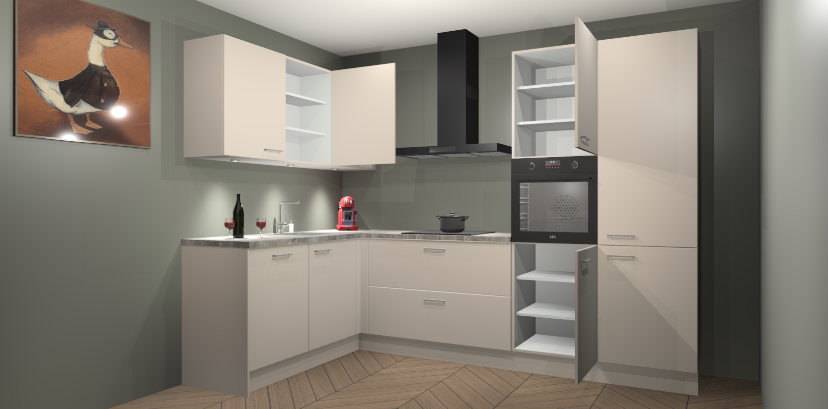 De kasjmier keuken Cognac gaat alleen maar om de beste keukenervaring. Kies gewoon de beste apparatuur en ongeëvenaarde Duitse constructie die u thuis wilt hebben en verander uw huiskamer hartelijkheid meteen in professionaliteit. Laat de toon weten dat u gemakkelijk kan genieten van alle luxe die u verdiend? Bestel nu de kasjmier keuken Cognac voor bij u thuis!
