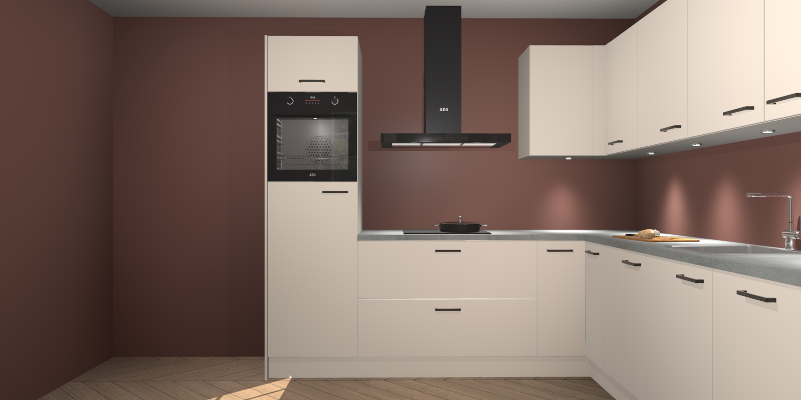 De Kasjmier keuken Debar is uitgerust met vijf inbouwapparaten die elke kooktaak handig en efficiënt maken. Een oven, inductiekookplaat, afzuigkap, vaatwasser en koelkast zijn standaard, maar kunnen na bestelling eenvoudig worden geupgrade naar AEG. Profiteer vervolgens van de softclose deuren voor snelle toegang en geruisloze toegang.